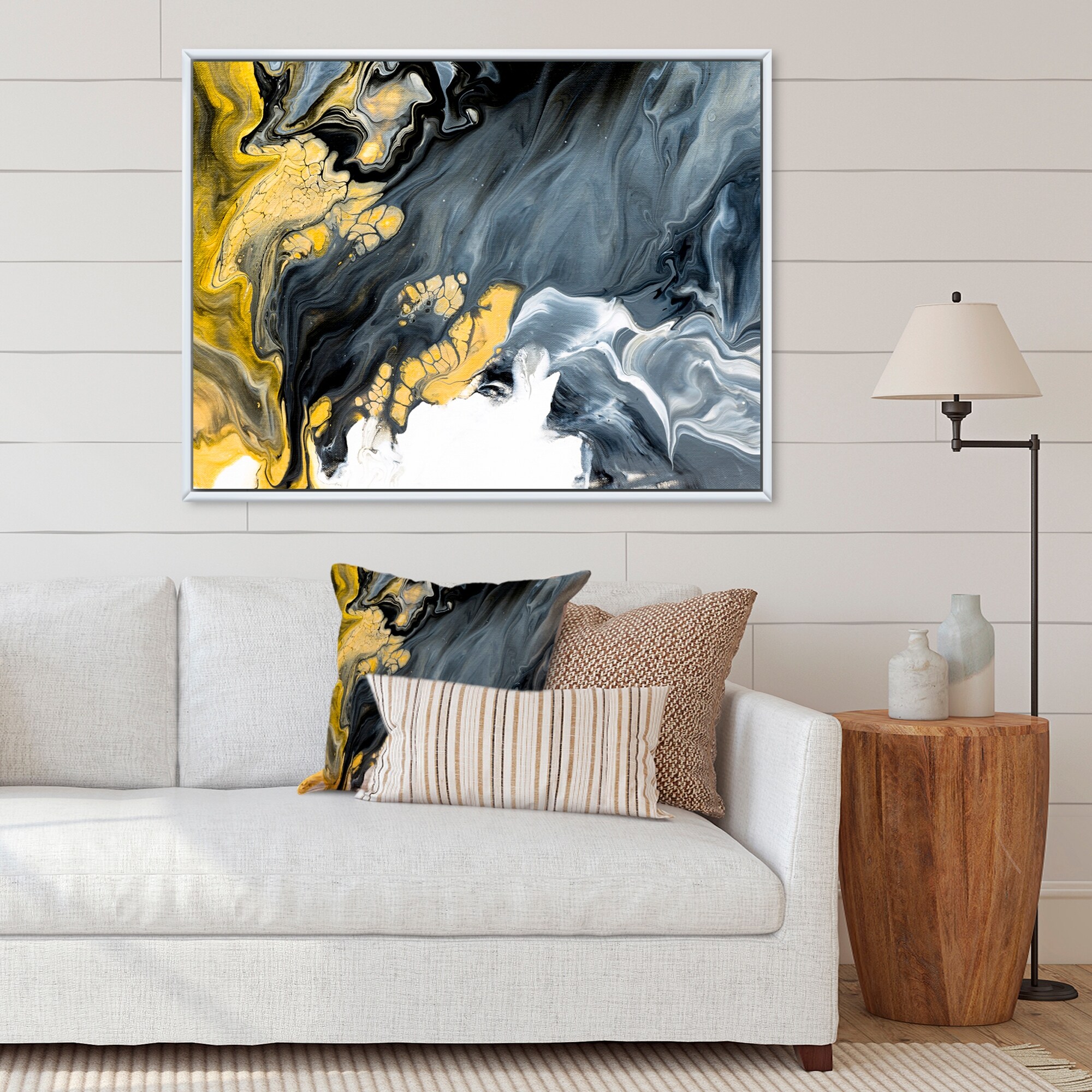 Designart "Yellow And Blue Fluid Stone Ii" Abstract Marble Framed Canvas Art Print