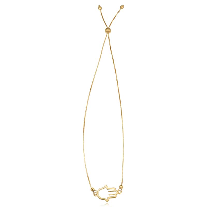14K Yellow Gold Hamsa Bolo Bracelet (adjustable up to 9 inches)