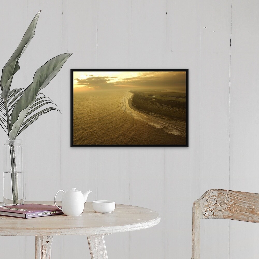 "Aerial view of coastline at dusk, Bald Head Island, North Carolina" Black Float Frame Canvas Art