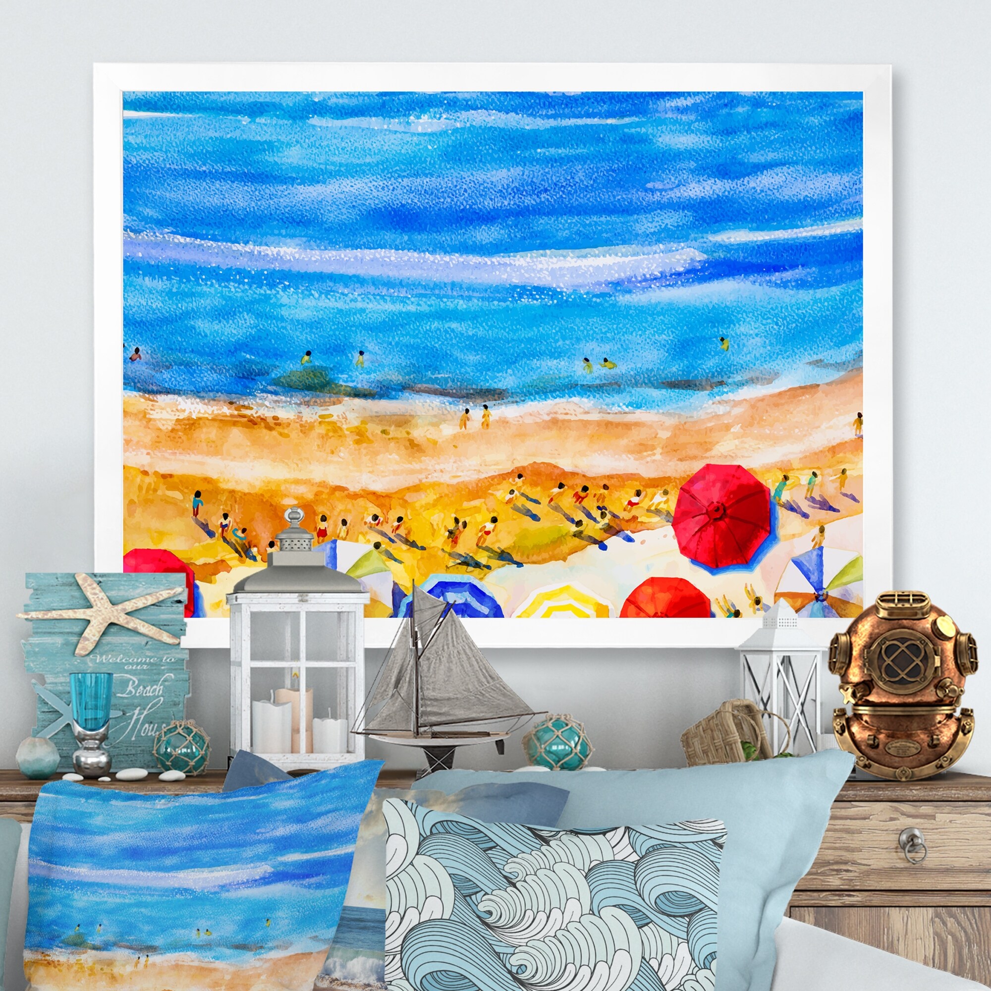 Designart "Aerial Pastel Beach California" Nautical & Coastal Framed Wall Art