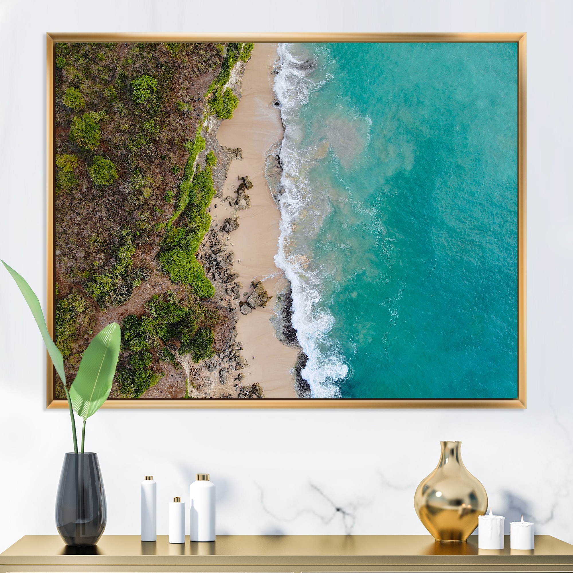 Designart "Aerial View of Tropical Beach IV" Nautical & Coastal Framed Canvas Wall Art Print