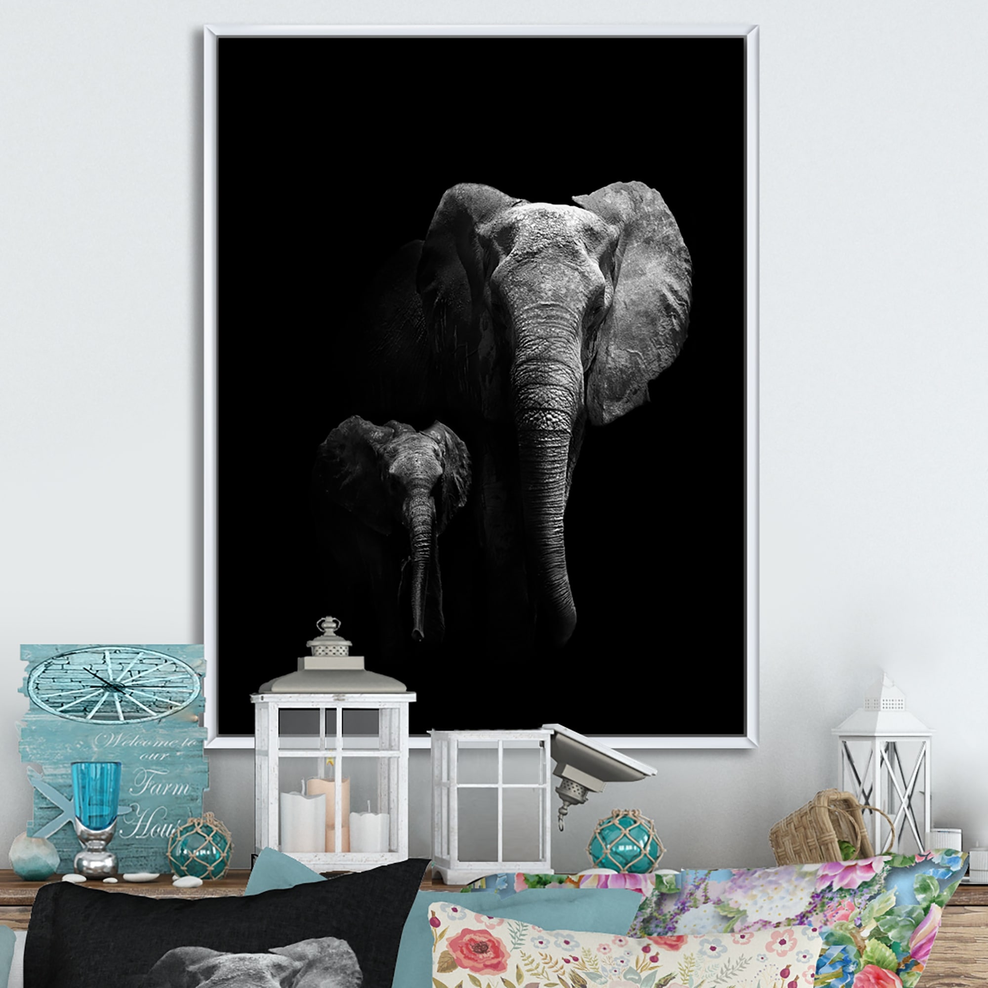 Designart "Wild African Elephant in Black And White" Traditional Framed Canvas Wall Decor