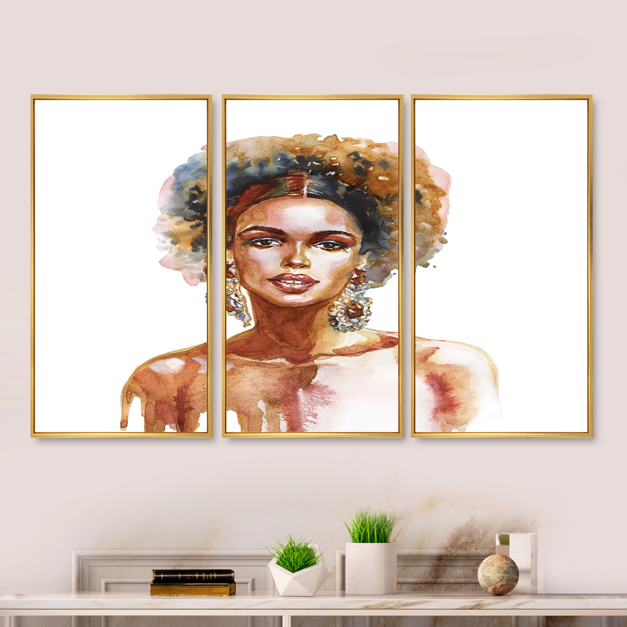 Designart "African American Woman with Turban II" Modern Framed Canvas Wall Art Print Set of 3 - 4 Colors of Frames