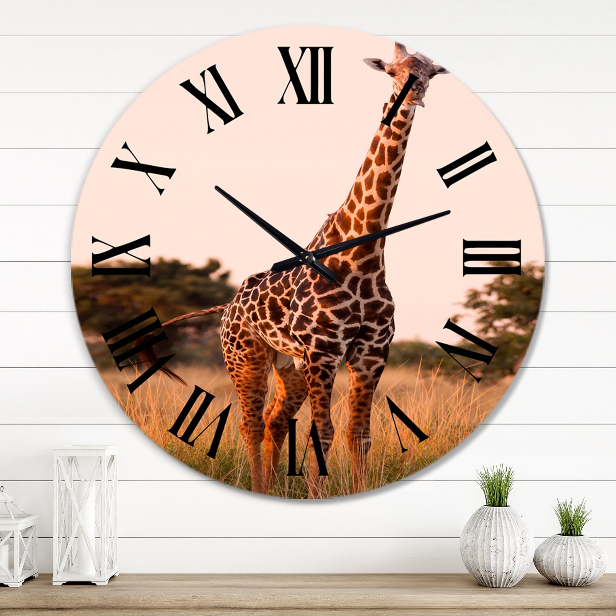 Designart 'African Giraffe in the Wild I' Farmhouse wall clock