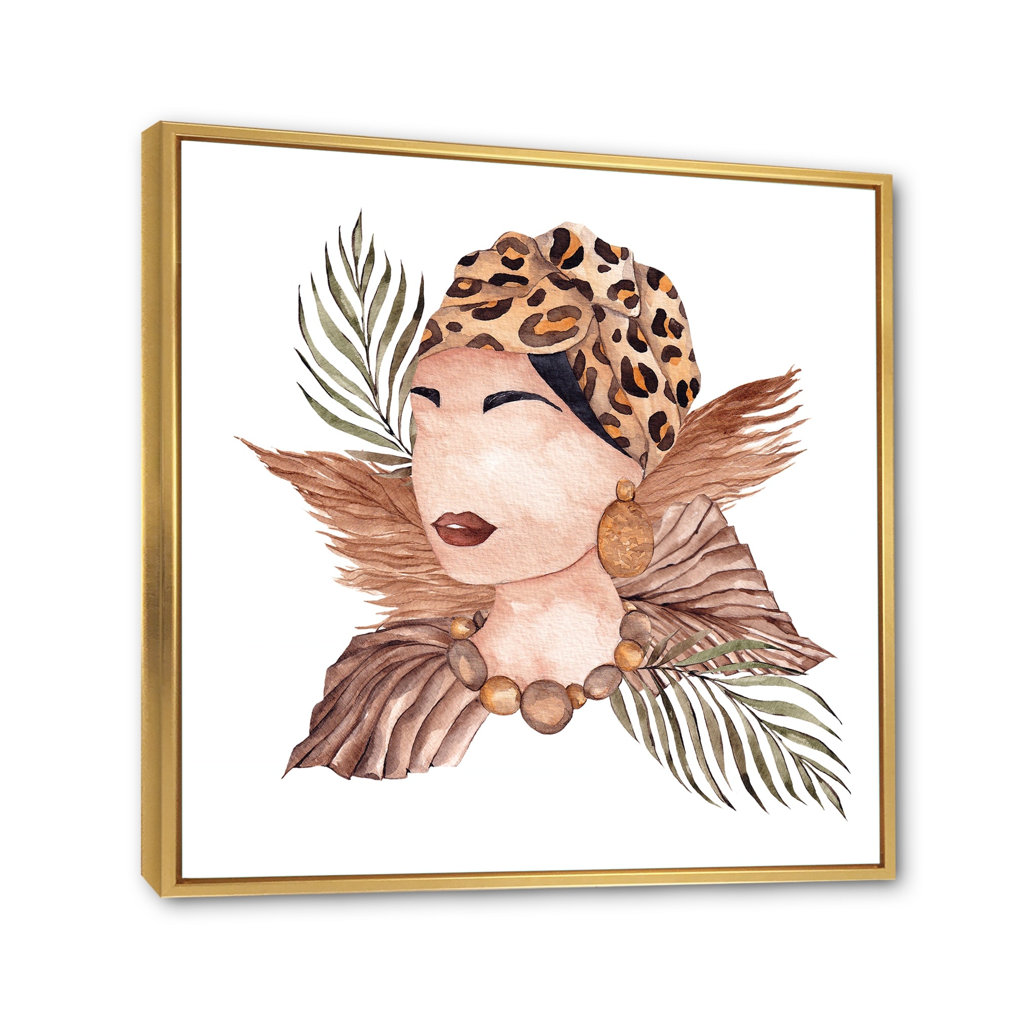 Designart "African American Woman, Dried Flowers, Leaves III" Glam Framed Canvas Wall Art Print