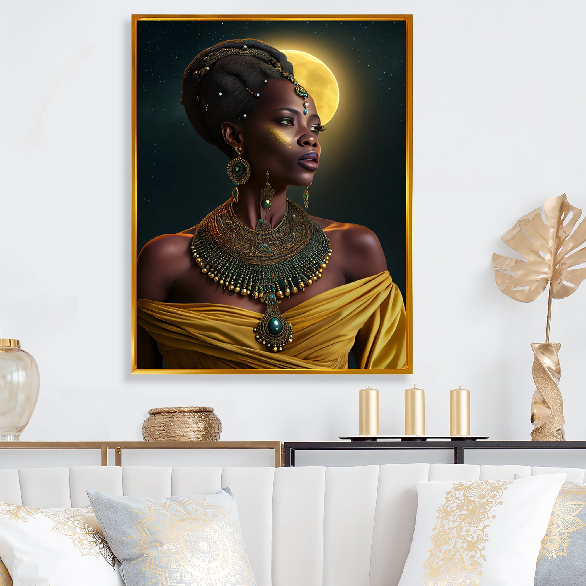 Designart "Emerald Queen African Woman Under Moon I" Contemporary Glam Framed Canvas Art Print