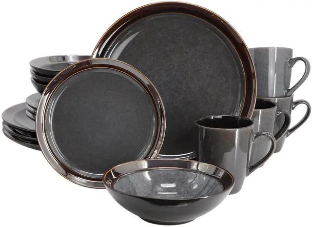 Gibson Elite Priya 16 Piece Stoneware Reactive Glaze Dinnerware Set in Grey