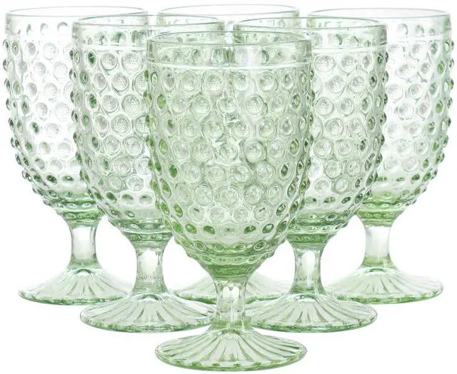Martha Stewart 6 Piece 14.2 Ounce Clear Glass Hobnail Goblet Drinkware Set in Green