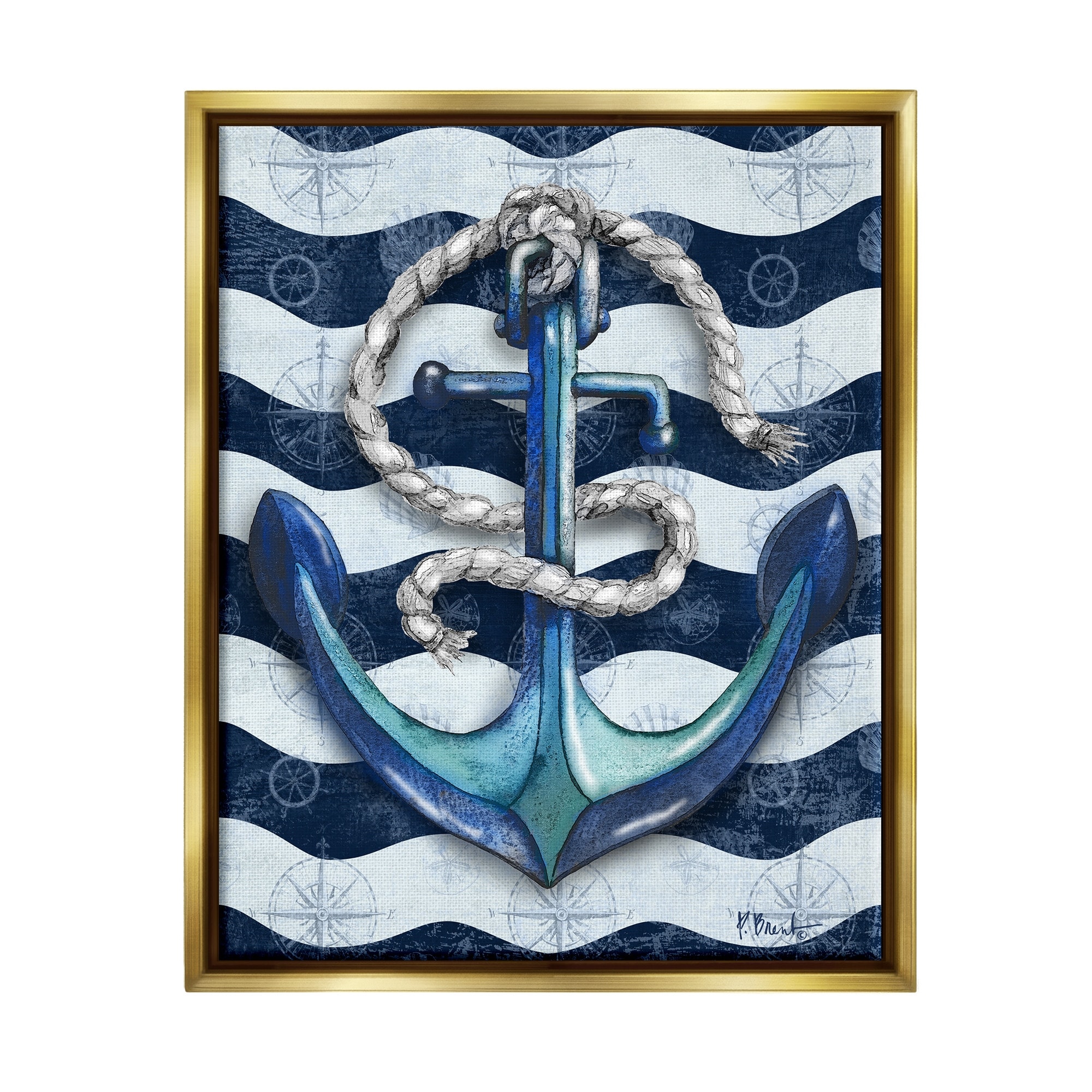 Stupell Industries Nautical Anchor Wavy Navy Stripes Floating Framed Canvas Wall Art, Design by Paul Brent