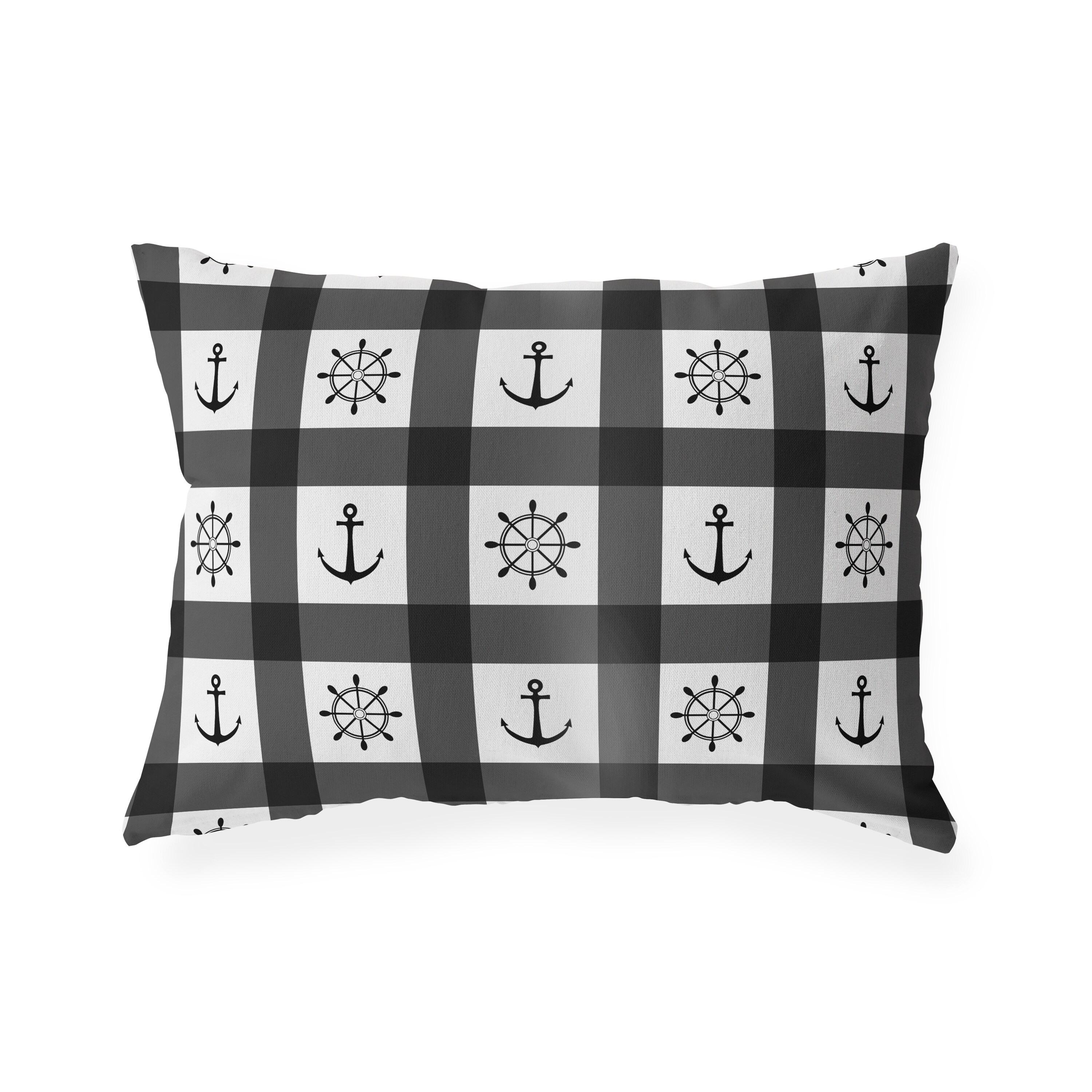 ANCHOR GALORE BLACK and WHITE Indoor|Outdoor Lumbar Pillow by Kavka Designs - 20X14
