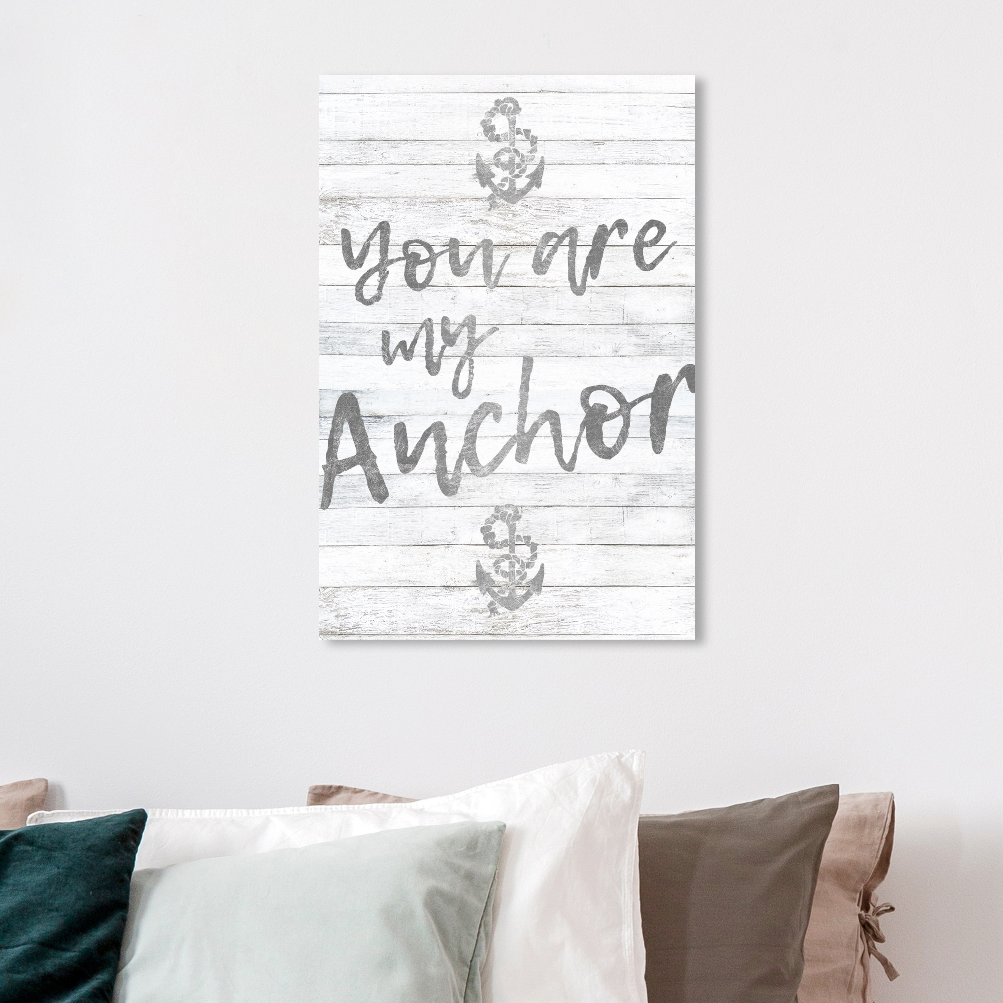 Oliver Gal 'You Are My Anchor Silver' Typography and Quotes Wall Art Canvas Print Love Quotes and Sayings - Gray, White