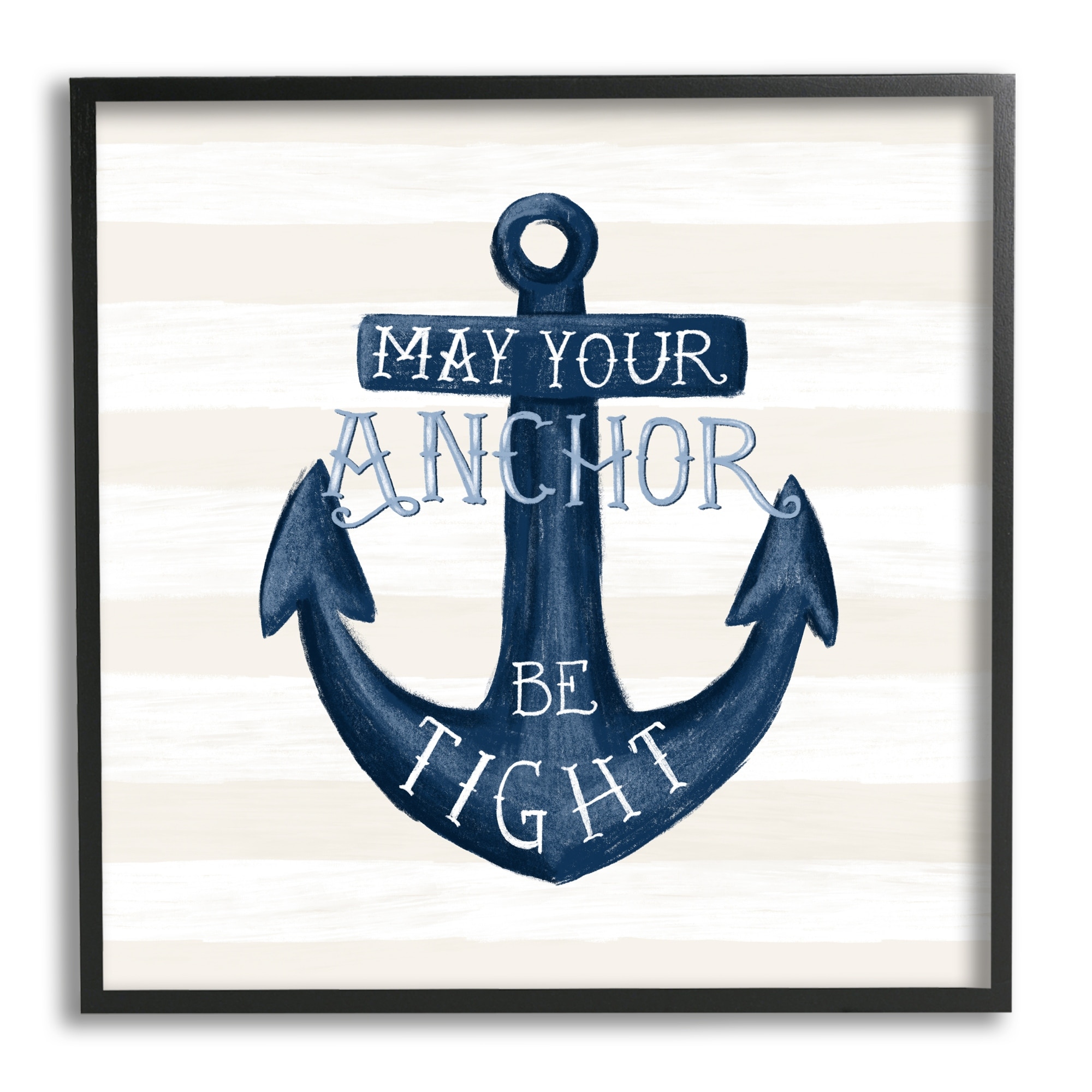 Stupell Industries Striped Anchor Phrase Nautical Beach Illustration Framed Wall Art, Design by Raquel Maciel - Blue
