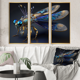 Designart "Cybernetic Dragonfly in Blue And Gold I" Animals Dragonfly Framed Canvas Wall Art Print - 3 Panels