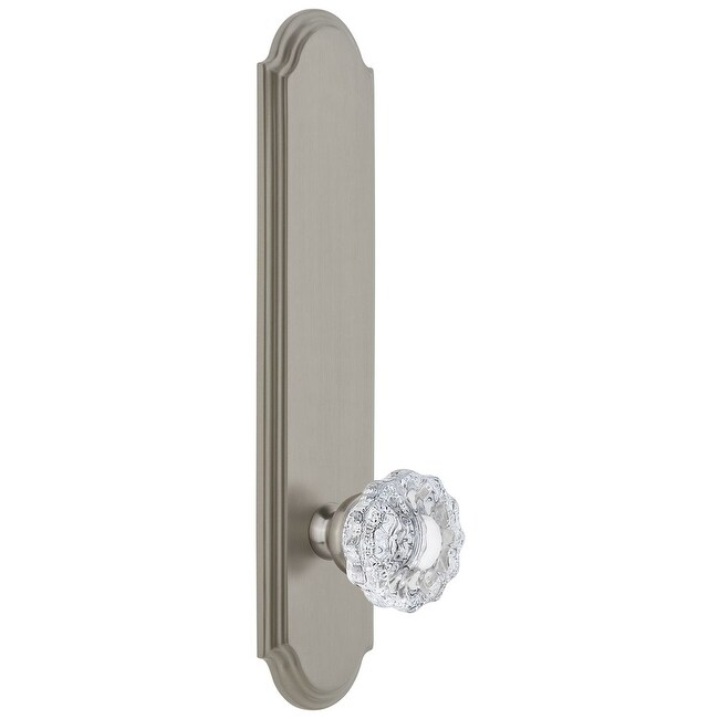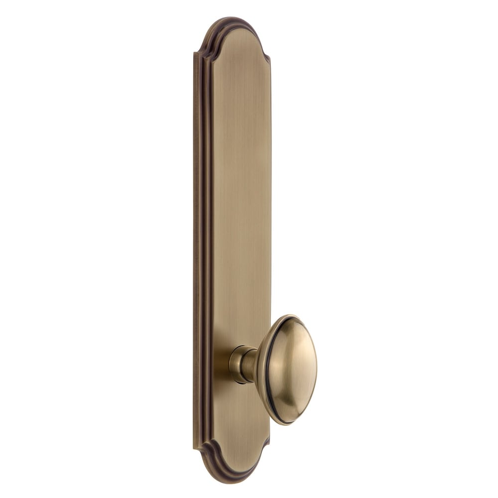 Grandeur Arc Solid Brass Tall Plate Passage Door Knob Set with