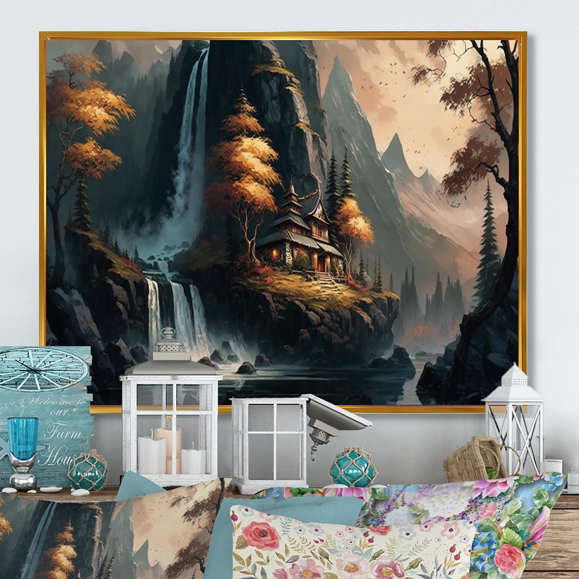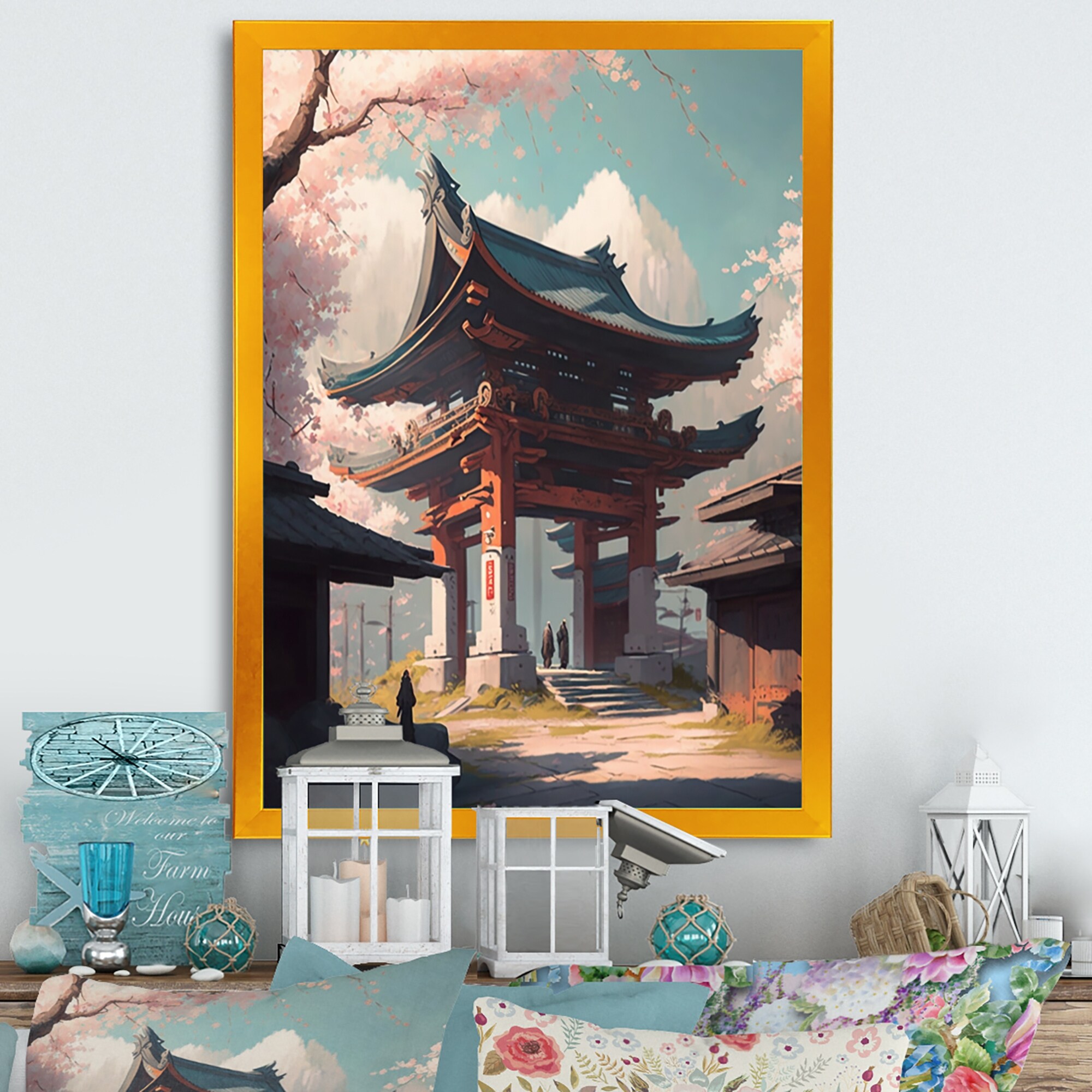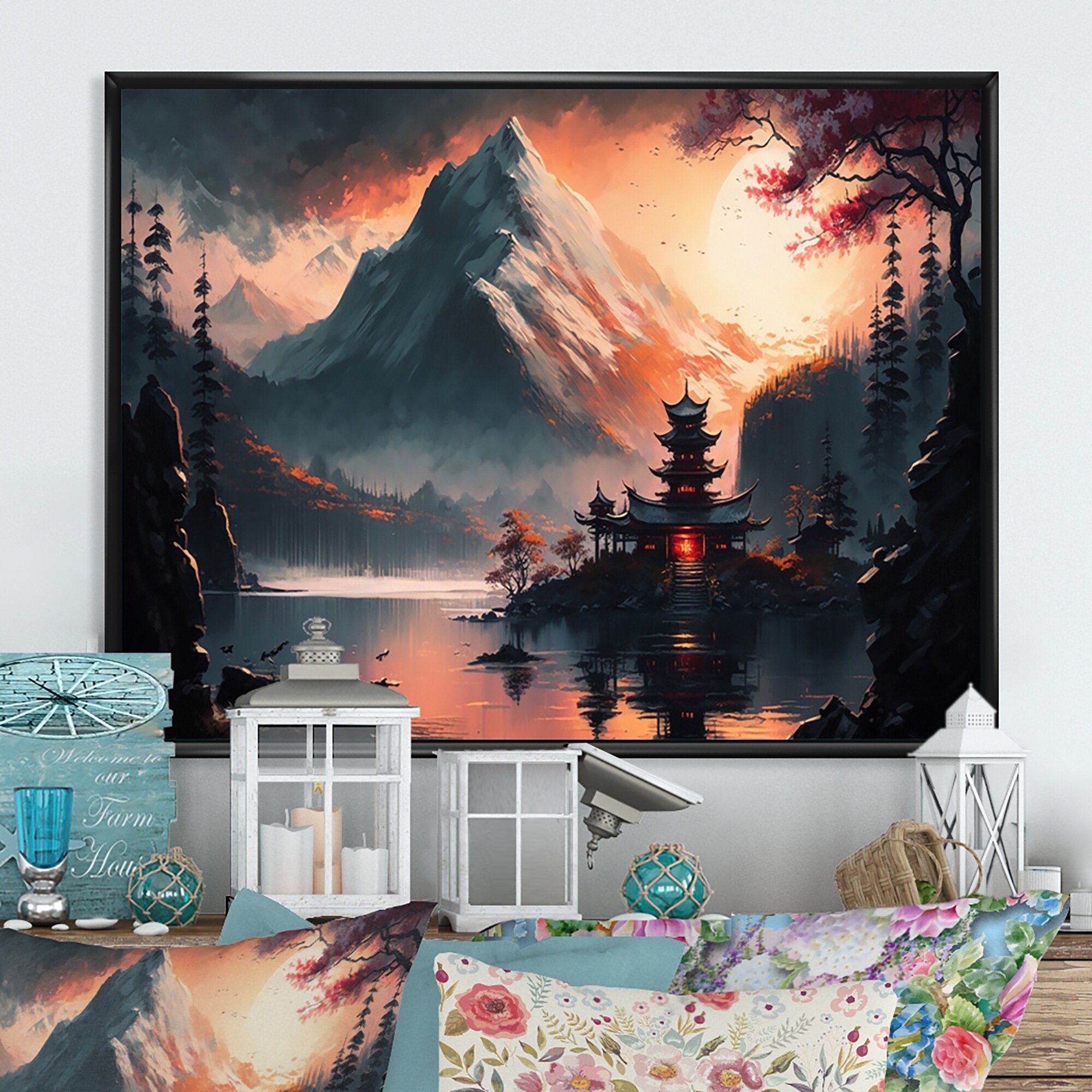 Designart "Architectural Building on Island Landscape IV" Japon Landscape Framed Canvas Art Print