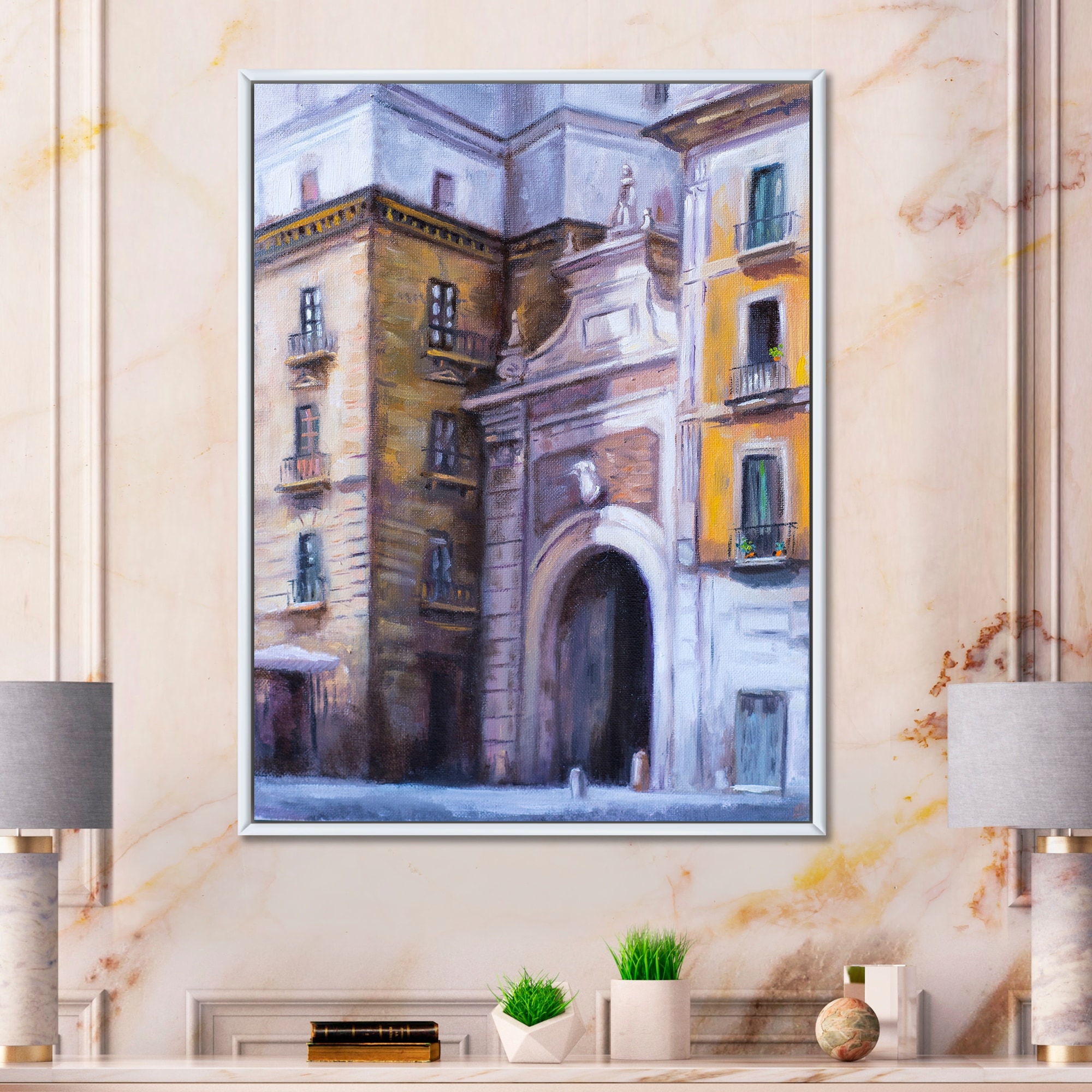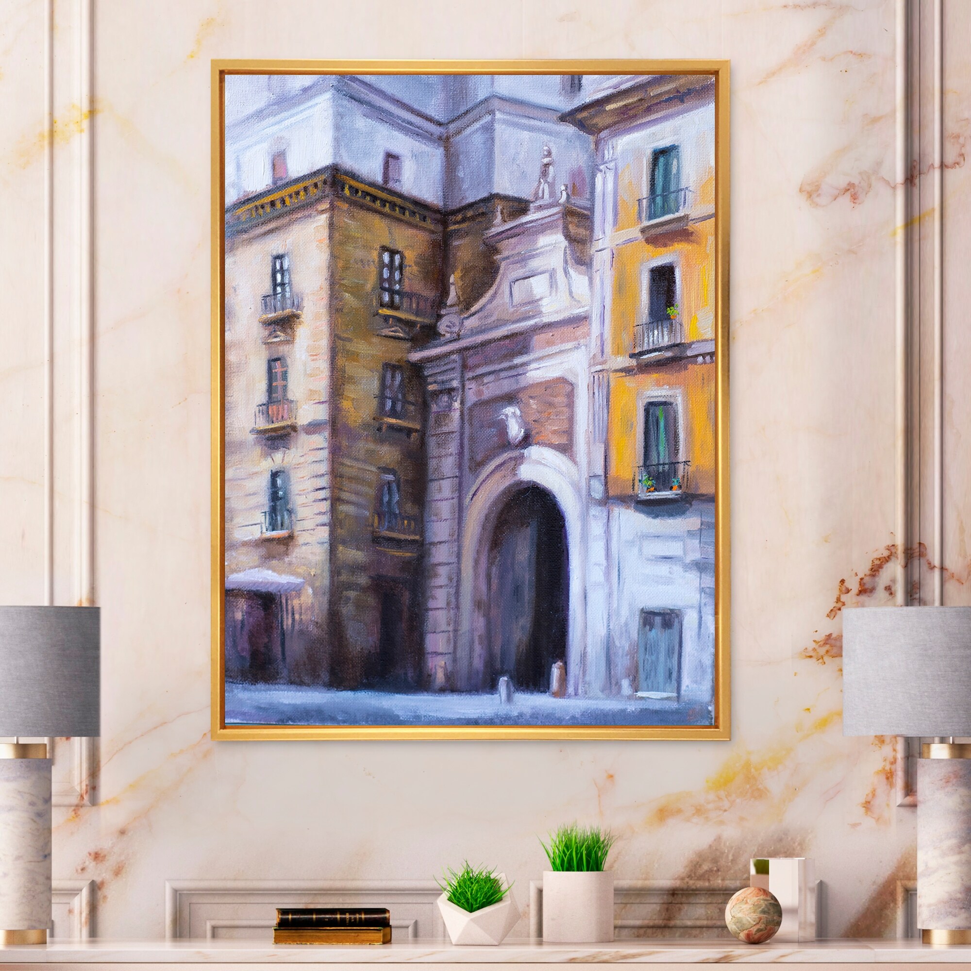 Designart "Architectural Arc in Italian City" Colonial Framed Canvas Wall Art Print