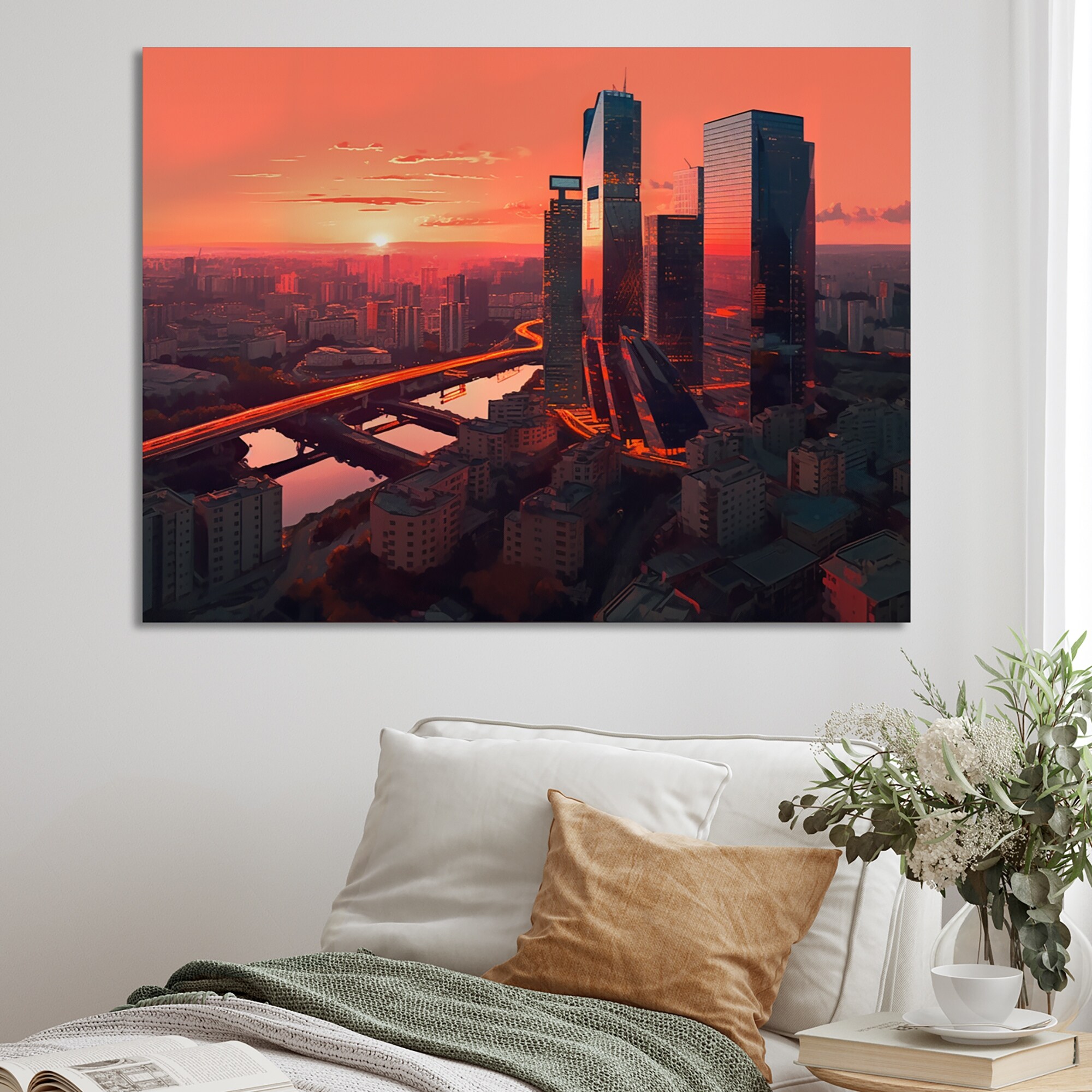 Designart "Orange And Pink Captivating City Architecture" City Architecture Canvas Art Print