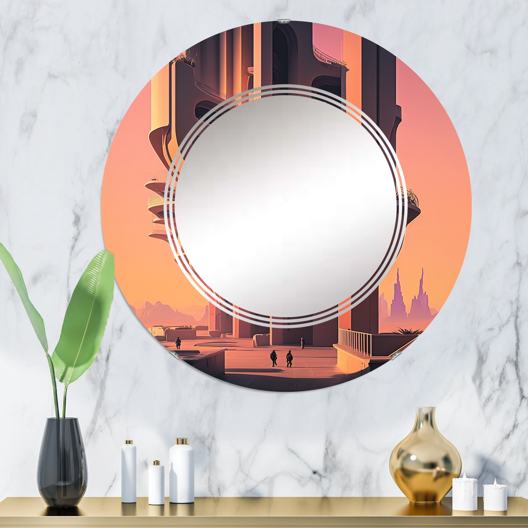 Designart 'Futuristic Architectural Building III' Printed City Futuristic Wall Mirror