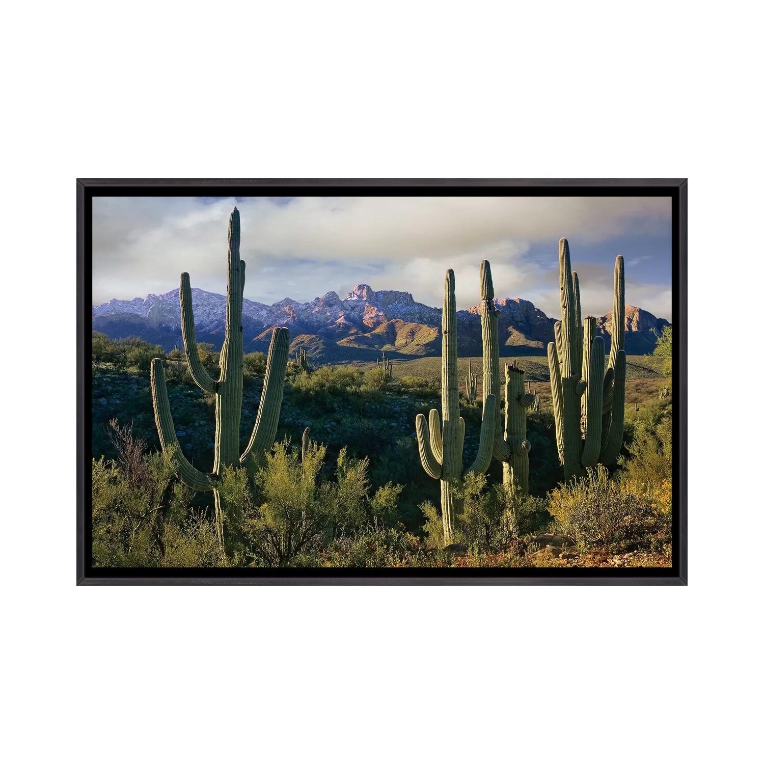 iCanvas "Saguaro Cacti And Santa Catalina Mountains, Arizona" by Tim Fitzharris Framed