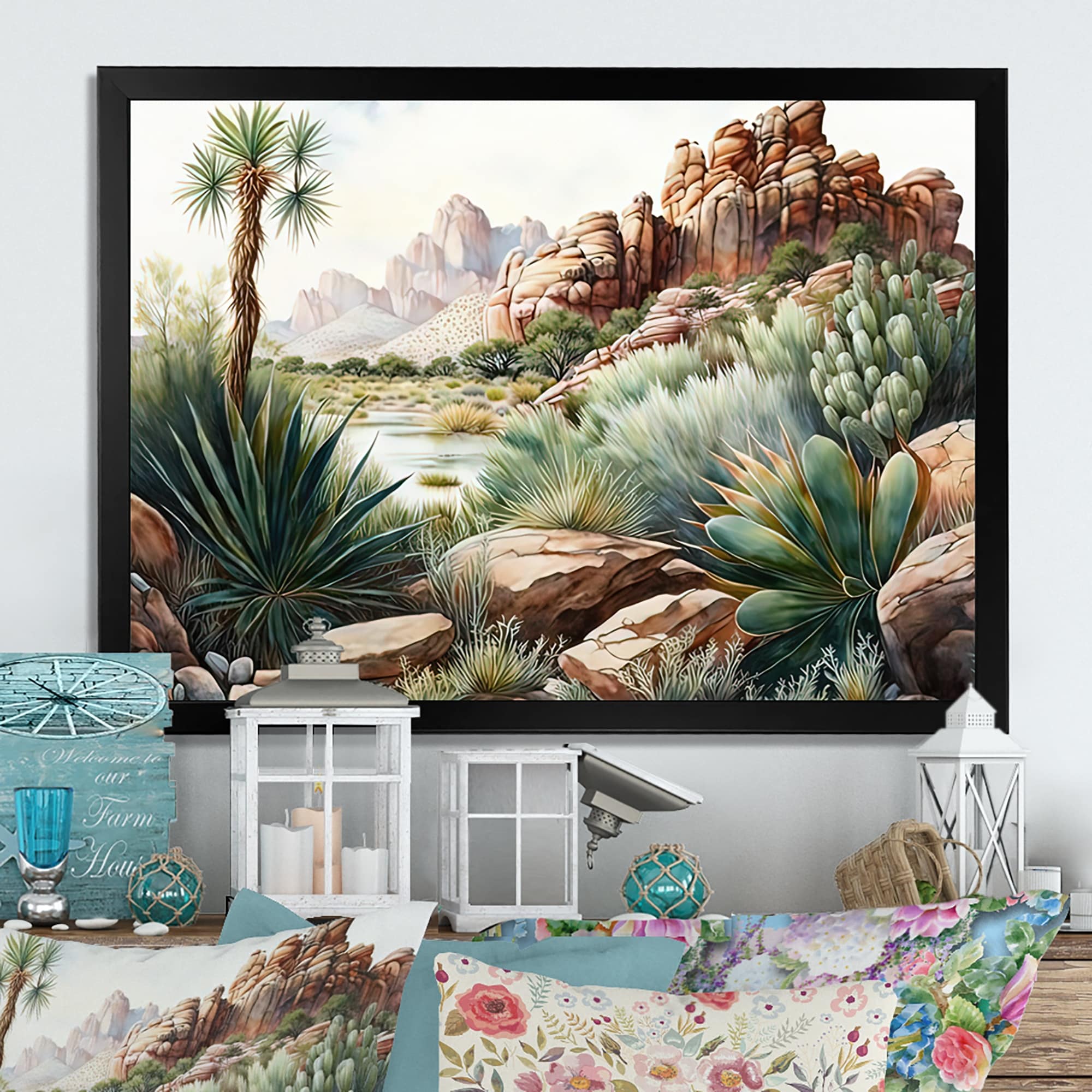 Designart "Arizona Desert Cactus II" Southwestern Framed Art Print