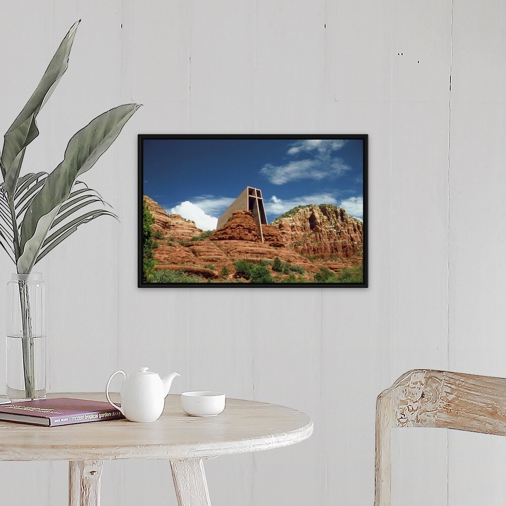 "Low angle view of a Chapel on a cliff, Sedona, Arizona" Black Float Frame Canvas Art