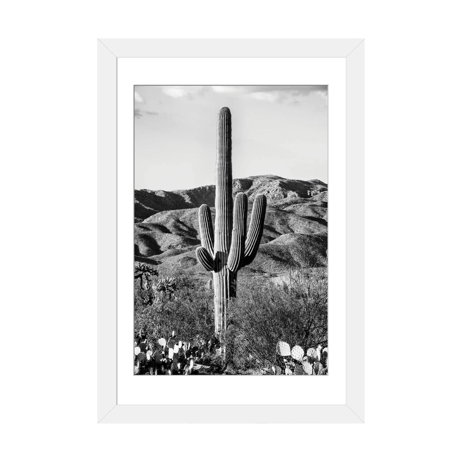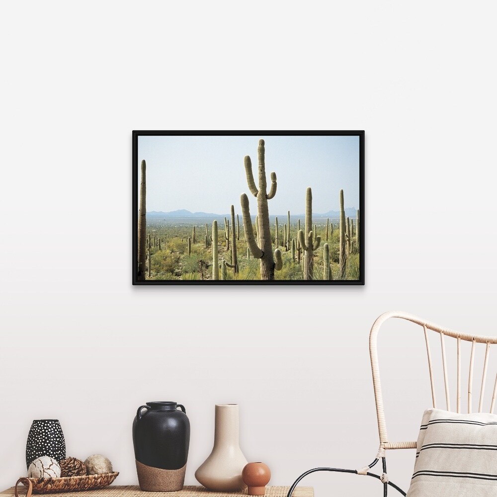 "Cactus in Saguaro National Park, Arizona" Black Float Frame Canvas Art