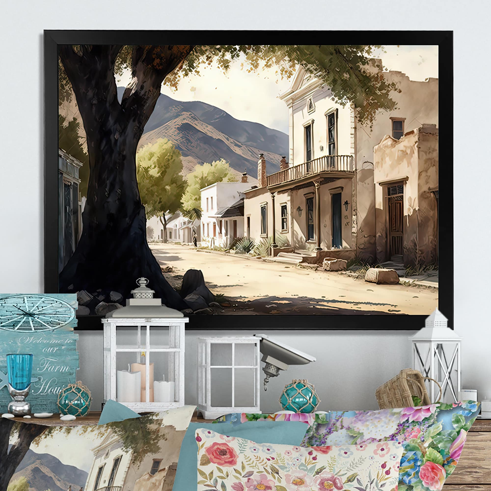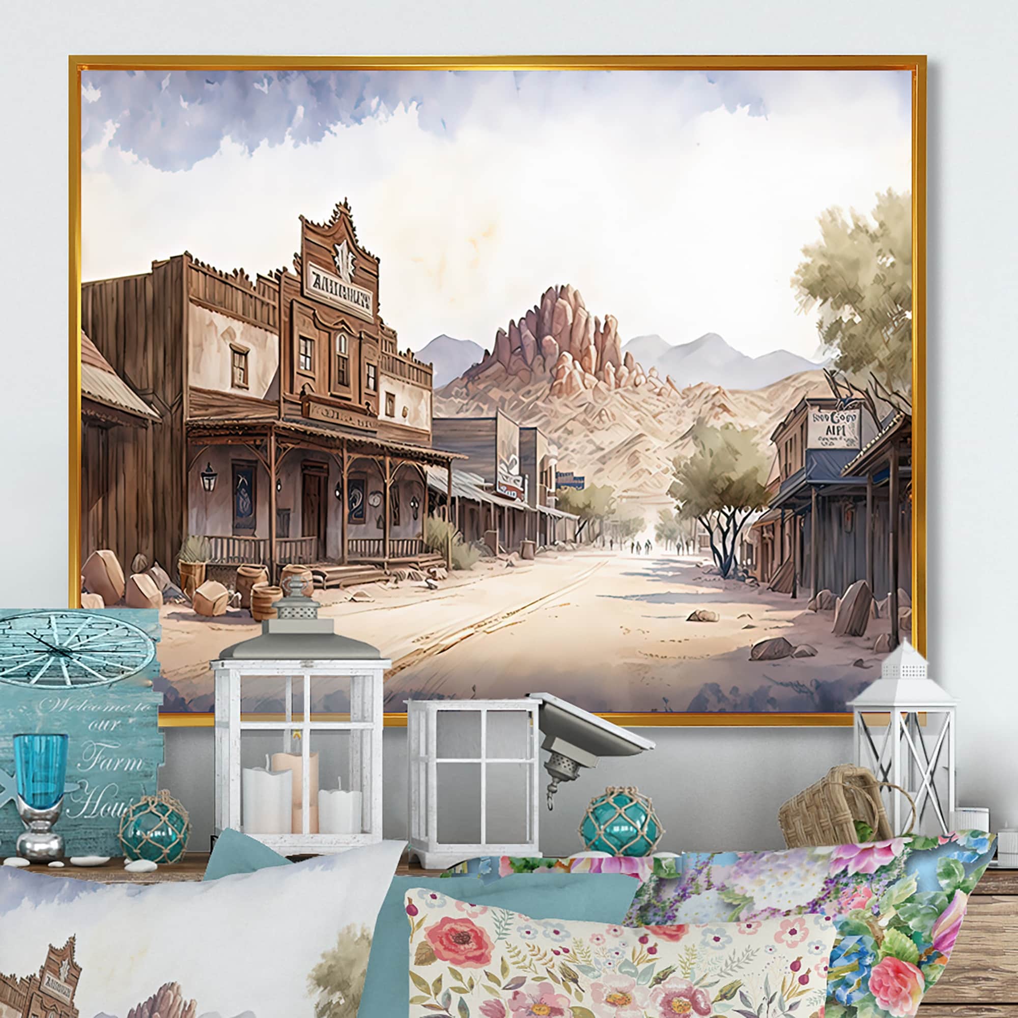 Designart "Large Wild West Arizona Town I" Southwestern Framed Canvas Art Print