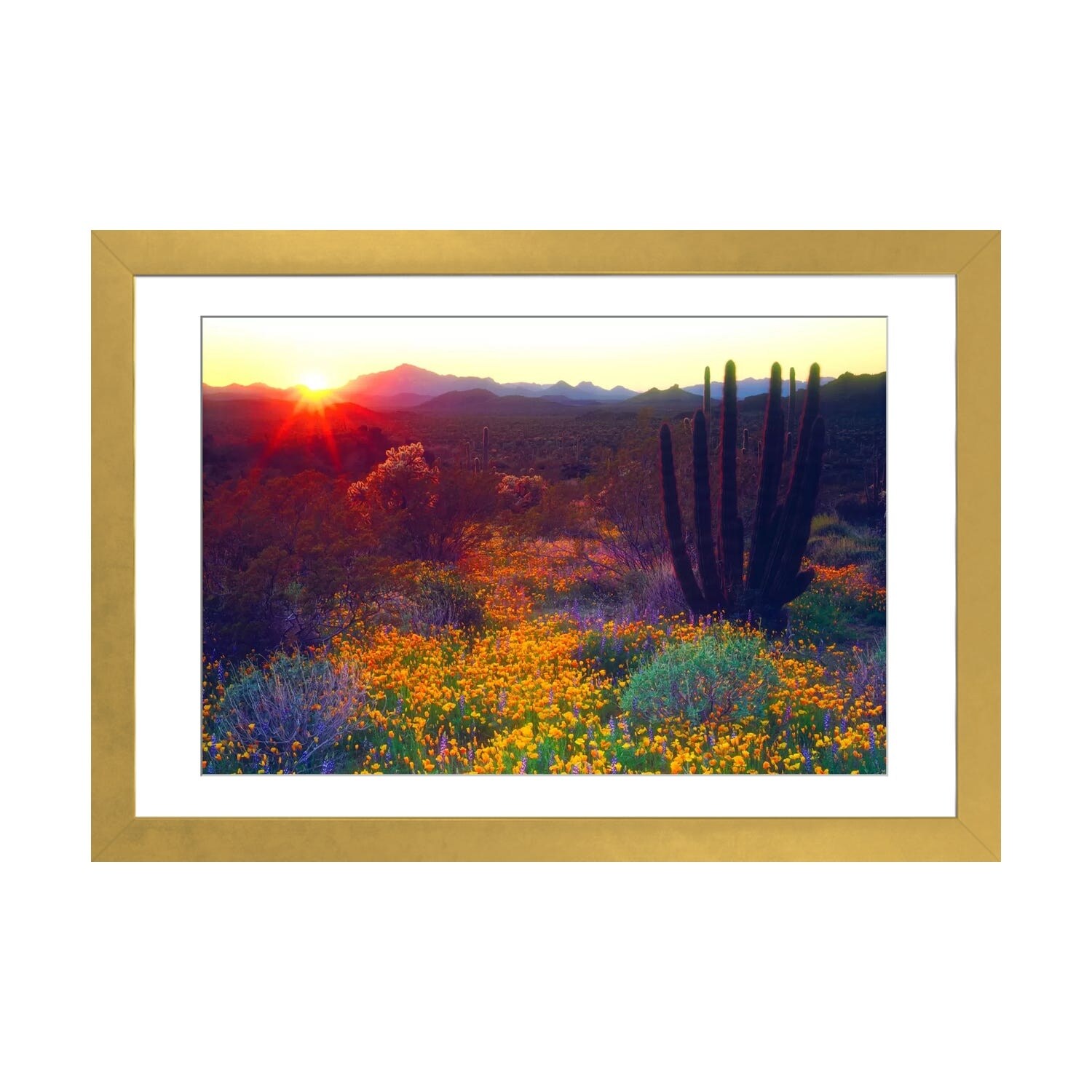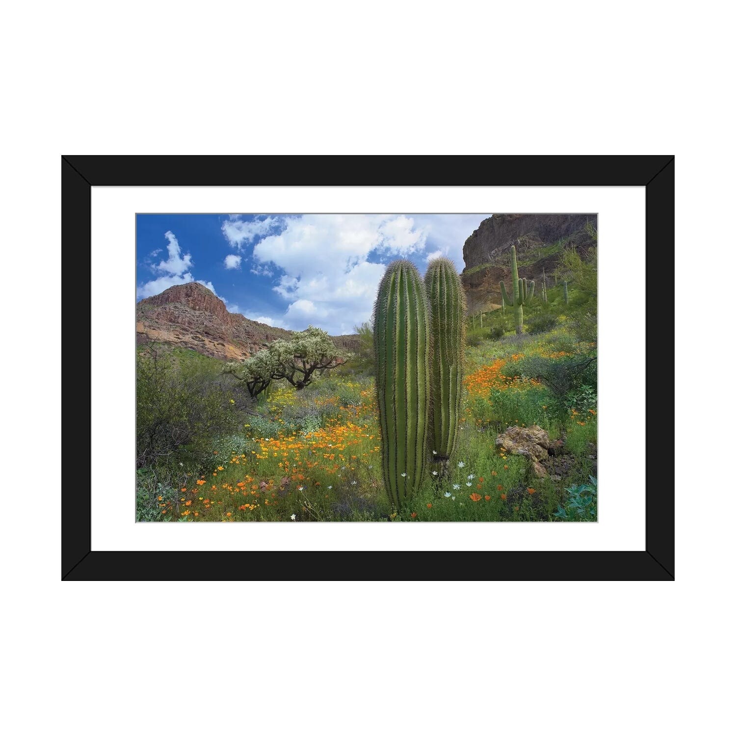 iCanvas "Saguaro Amid Flowering Lupine, Organ Pipe Cactus National Monument,Arizona And Desert Golden Poppies" by Tim Fitzharris