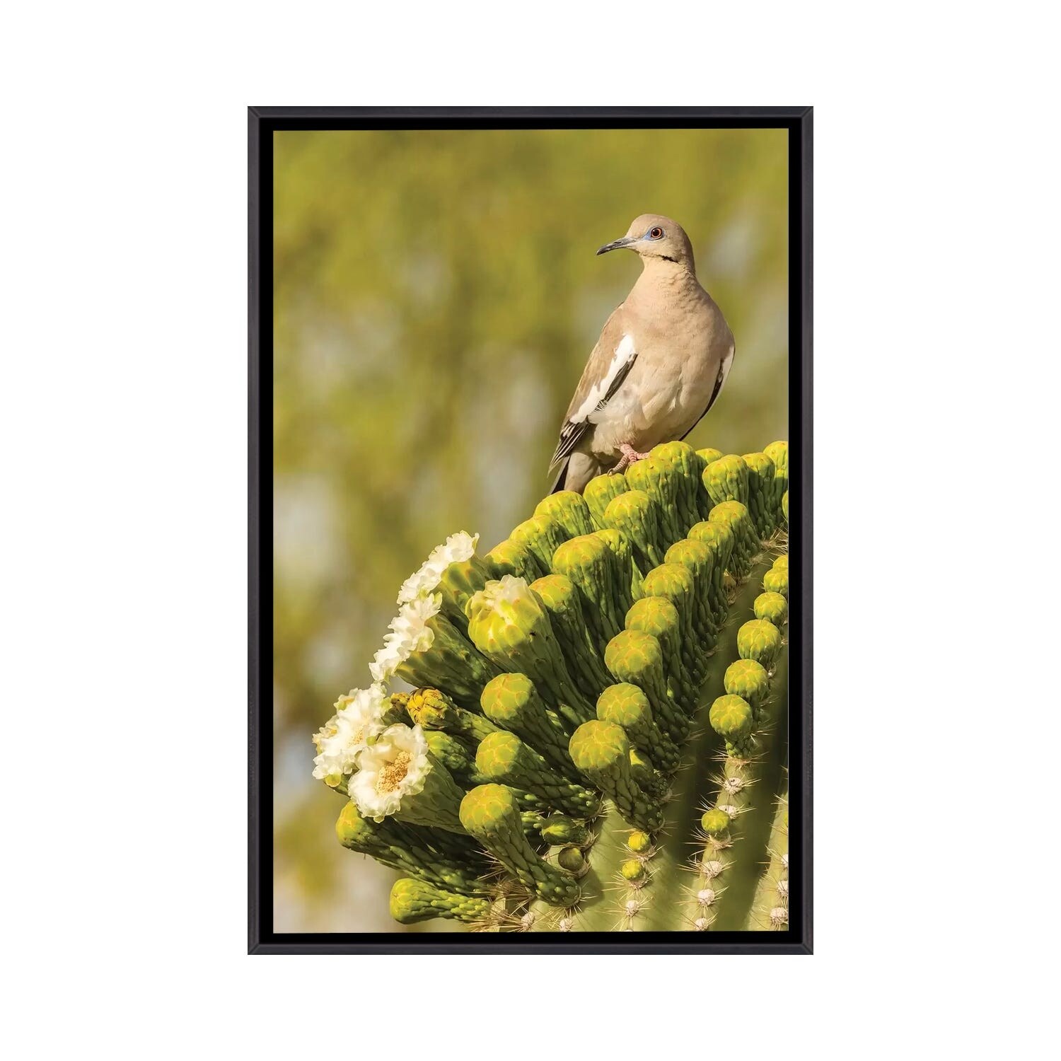 iCanvas "USA, Arizona, Sonoran Desert. White-winged dove on saguaro cactus. " by Jaynes Gallery Framed