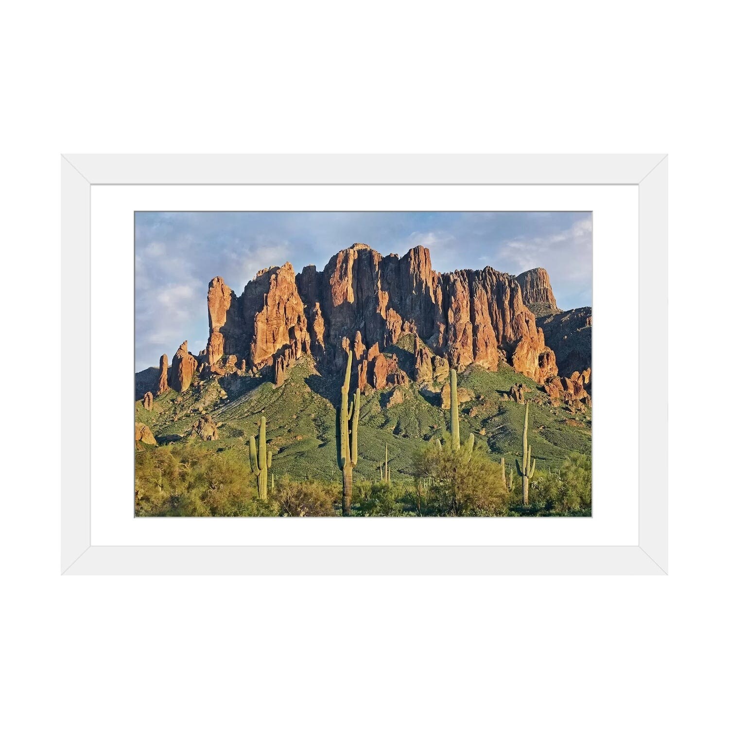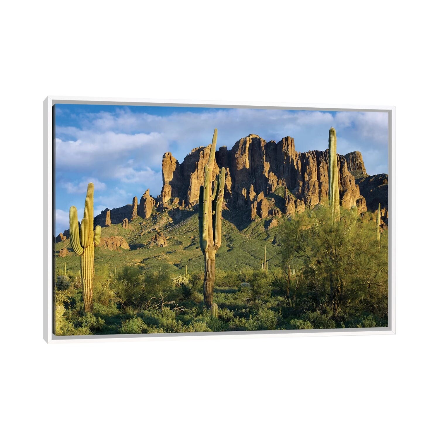 iCanvas "Saguaro Cacti And Superstition Mountains, Lost Dutchman State Park, Arizona I" by Tim Fitzharris Framed Canvas Print