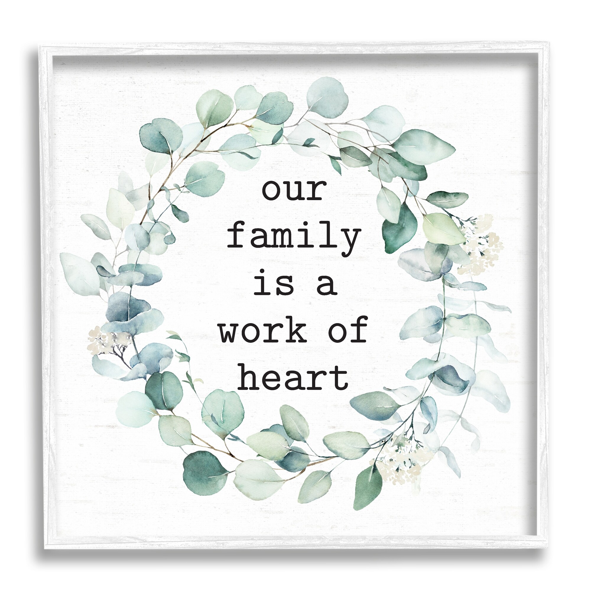 Stupell Work of Heart Family Phrase Botanical Blooms Wreath Framed Wall Art, Design by Lettered and Lined - White