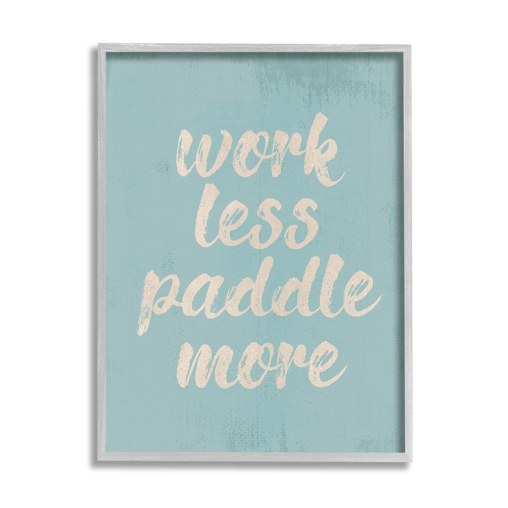 Stupell Work Less Paddle More Nautical Phrase Tranquil Blue Framed Wall Art