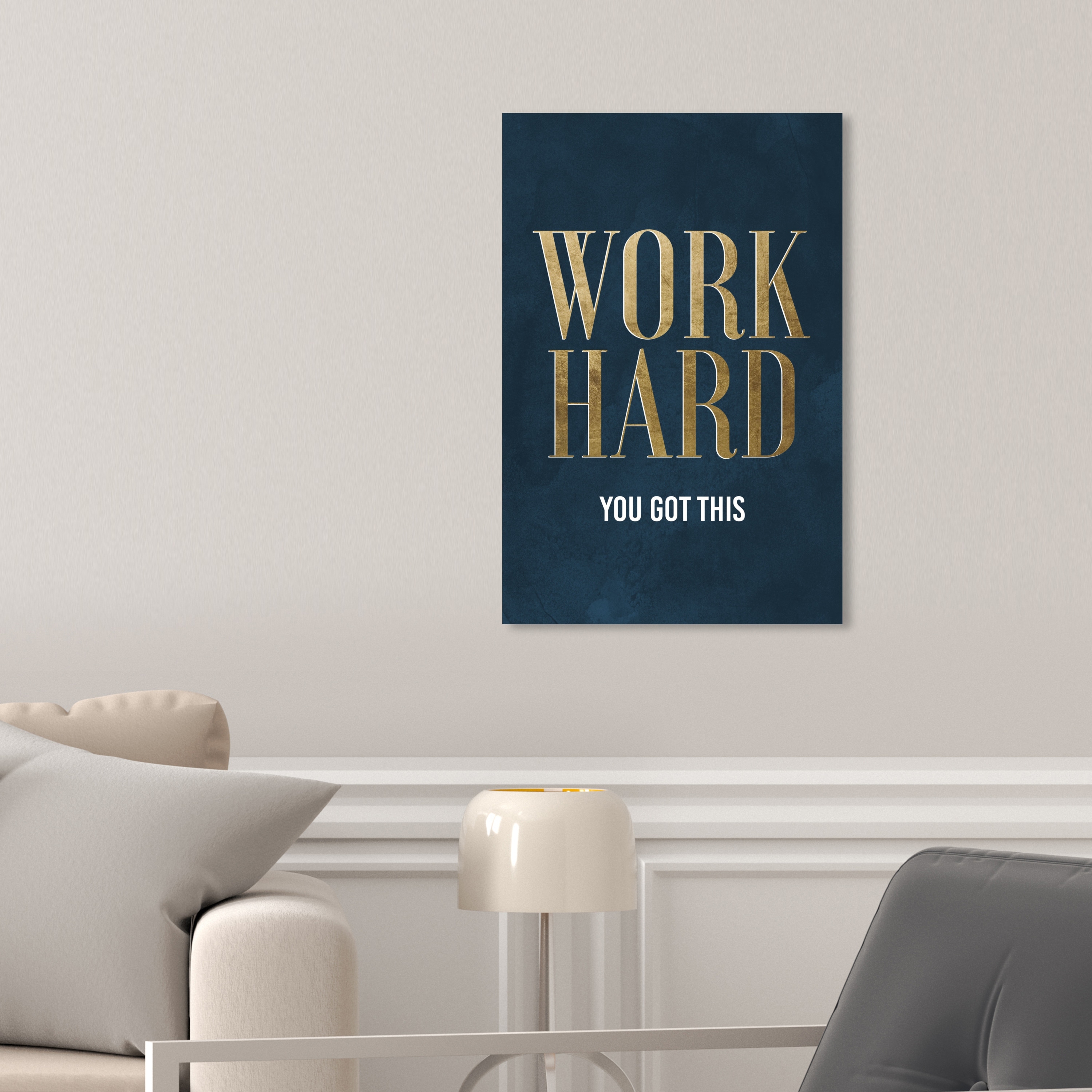 Oliver Gal 'Work Hard Navy' Typography and Quotes Wall Art Canvas Print Motivational Quotes and Sayings - Blue, Gold