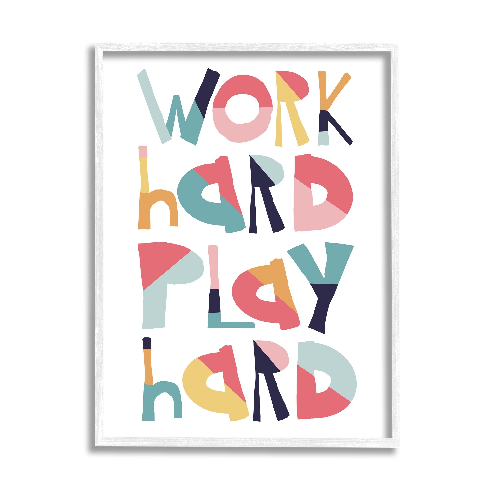 Stupell Work Hard Play Hard Phrase Geometric Pattern Typography Framed Wall Art - Multi-Color