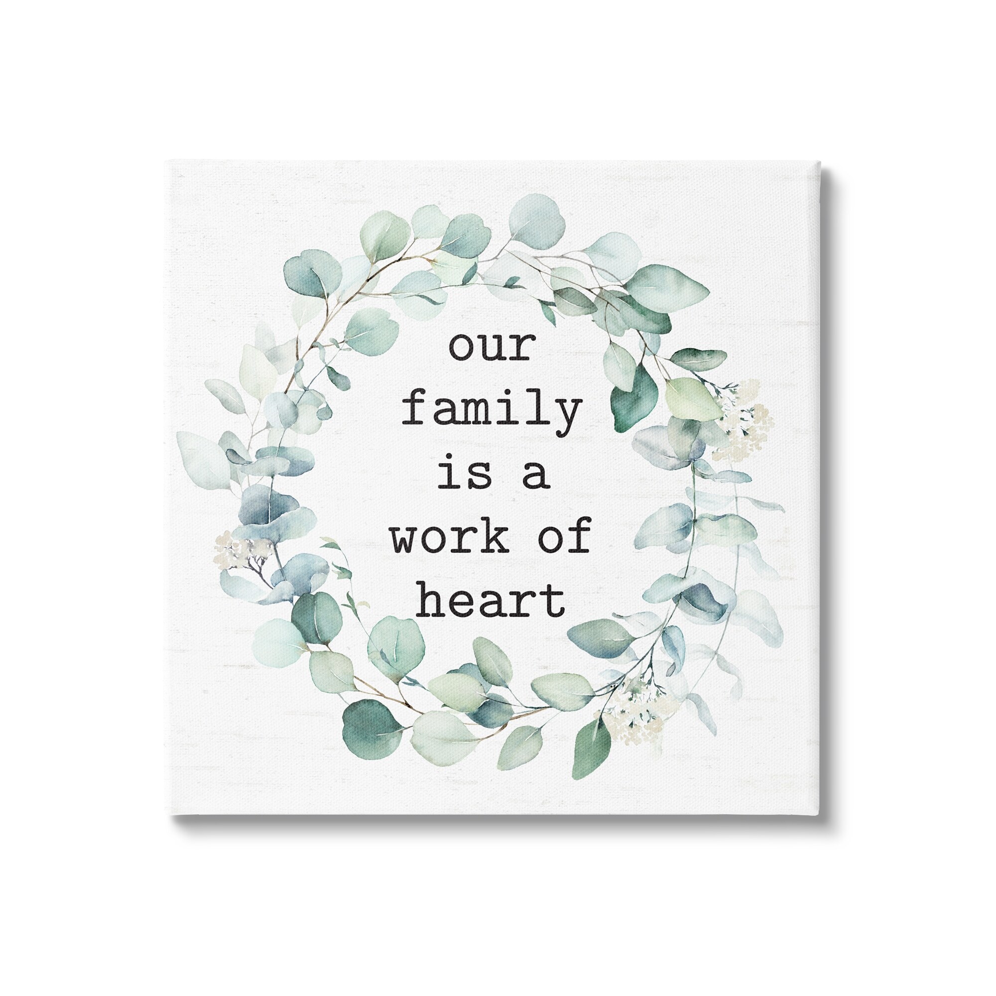 Stupell Work of Heart Family Phrase Botanical Blooms Wreath Canvas Wall Art, Design by Lettered and Lined