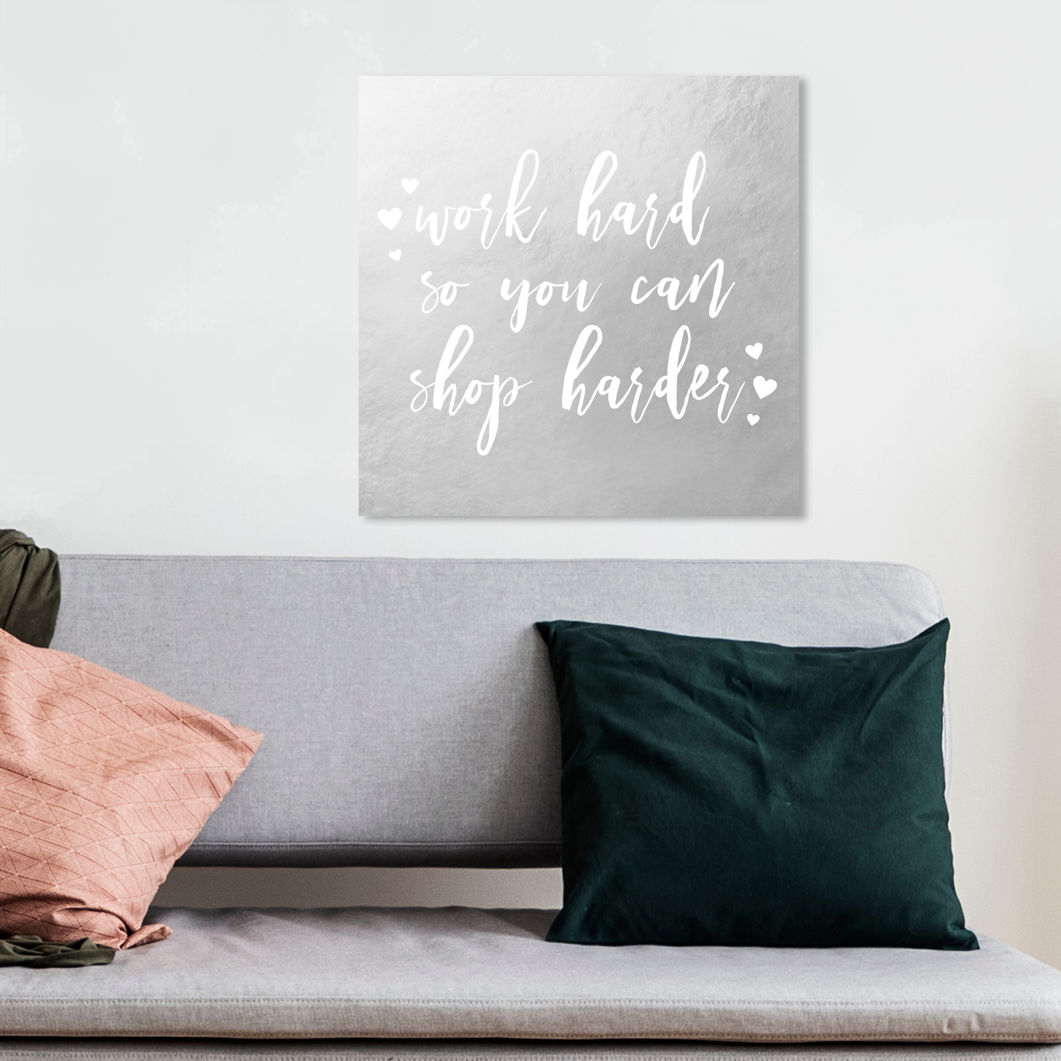 Oliver Gal 'Work Hard Shop Harder' Typography and Quotes Wall Art Canvas Print Fashion Quotes and Sayings - Gray, White