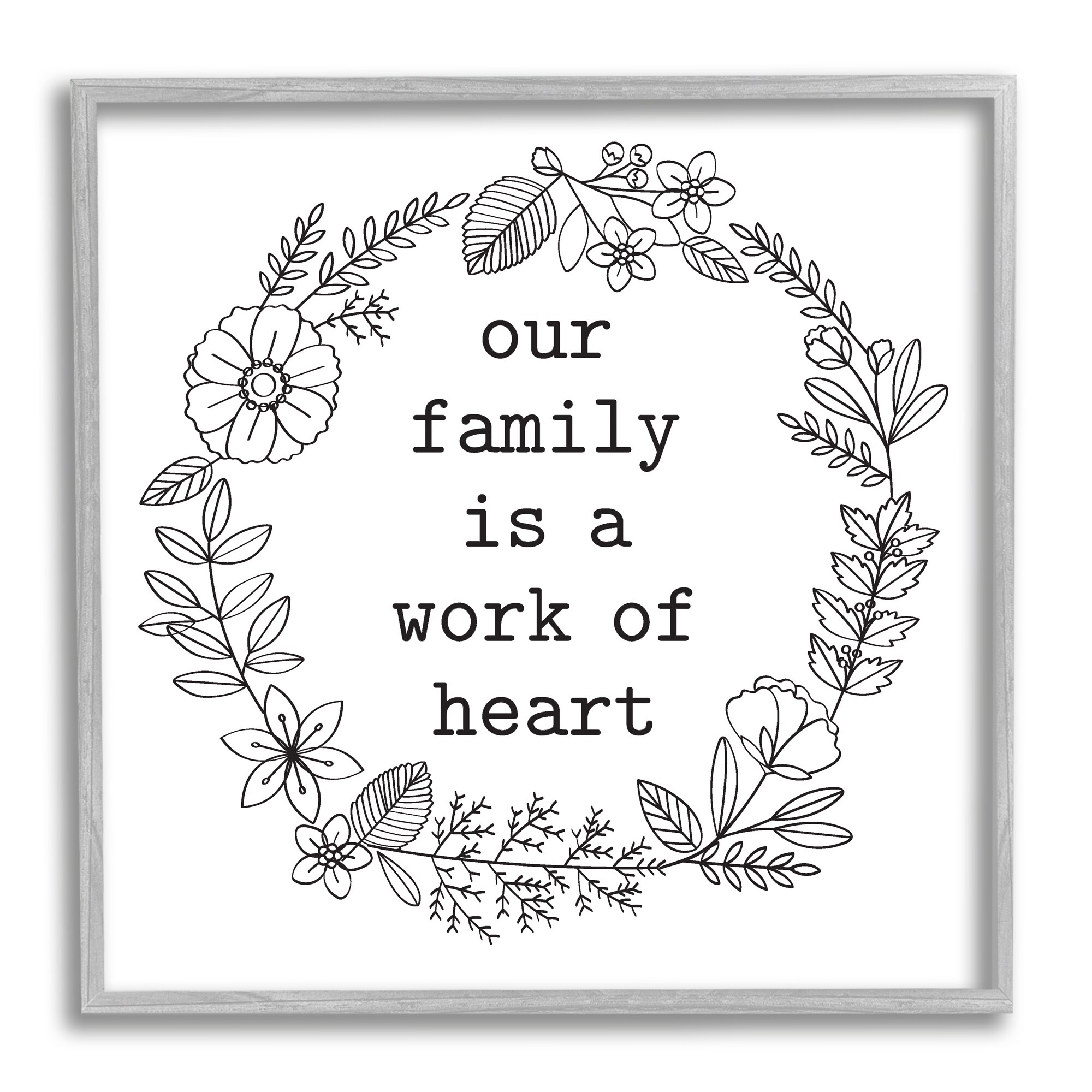 Stupell Work of Heart Floral Outline Wreath Family Quote Framed Wall Art, Design by Lettered and Lined - White