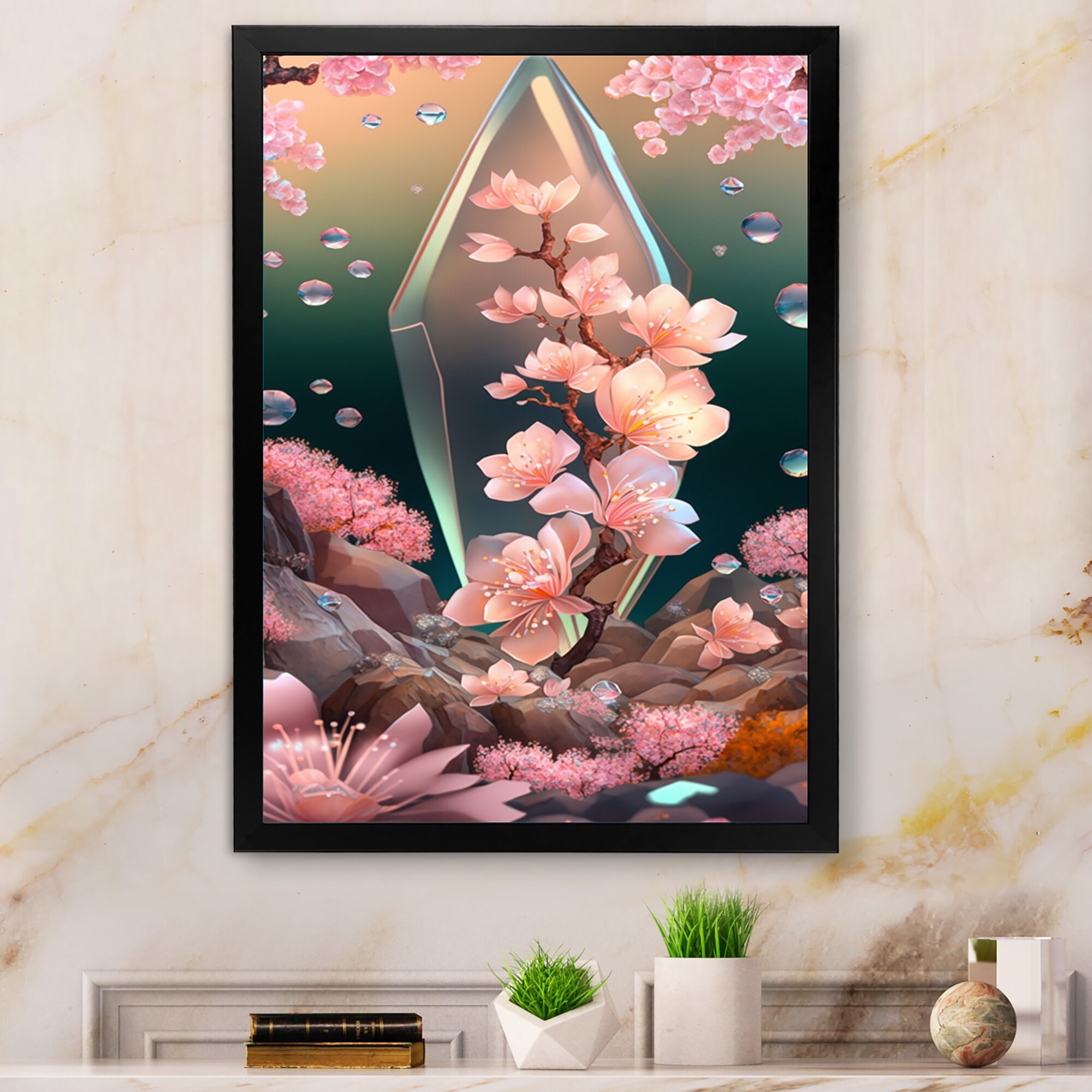 Designart "Cherry Blossums Tree II" Floral Cherry Framed Art Print