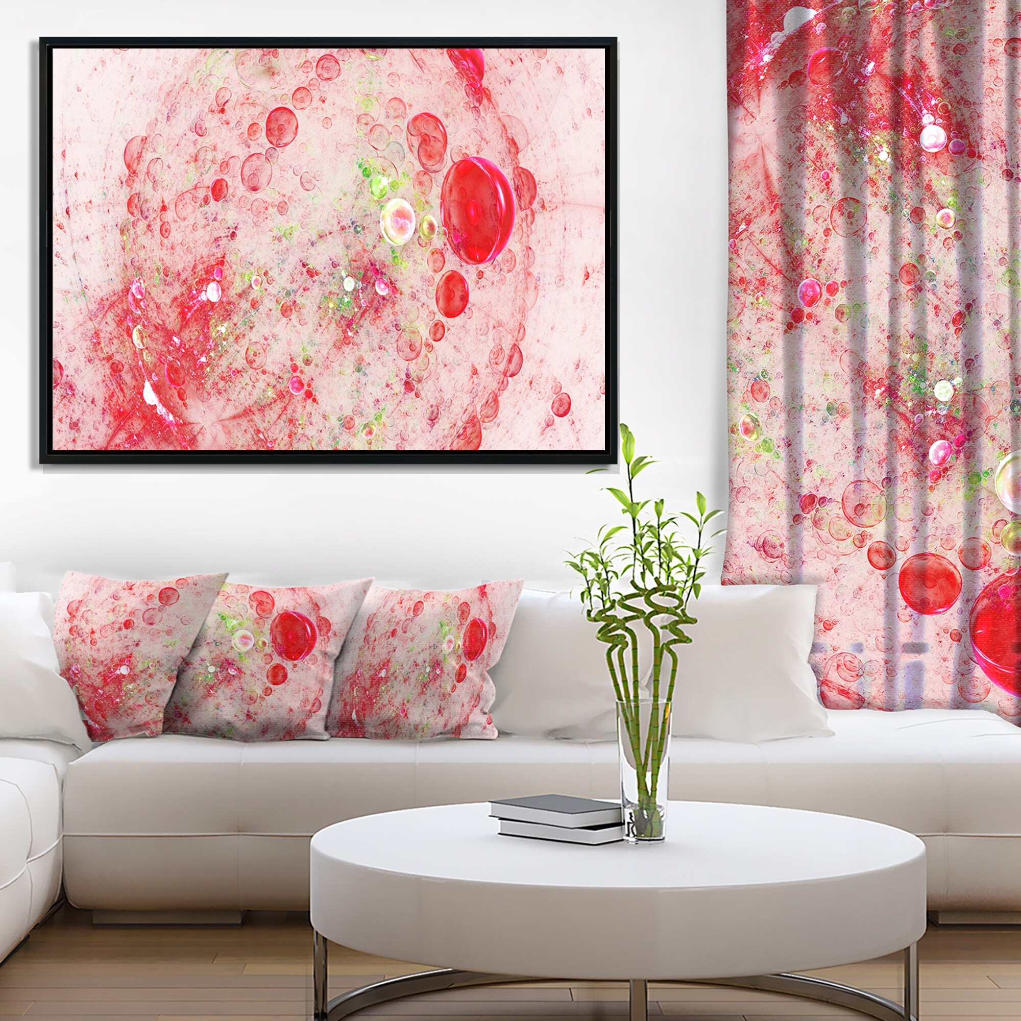 Designart "Red Fractal Planet of Bubbles" Abstract Wall Art Framed Canvas
