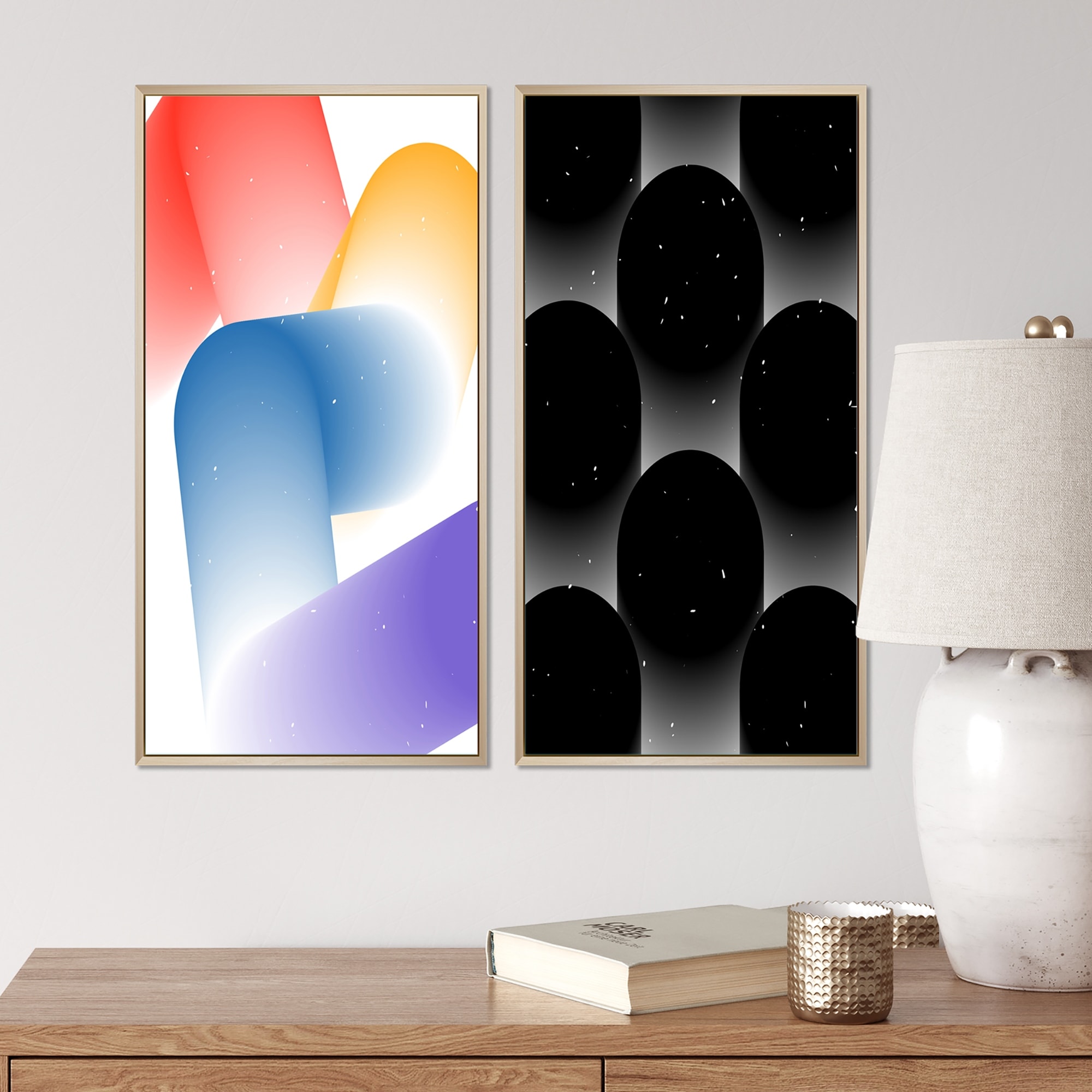 Designart "Minimal Abstract Shapes in Retro Colors III" Geometric Framed Art Set of 2 Pieces