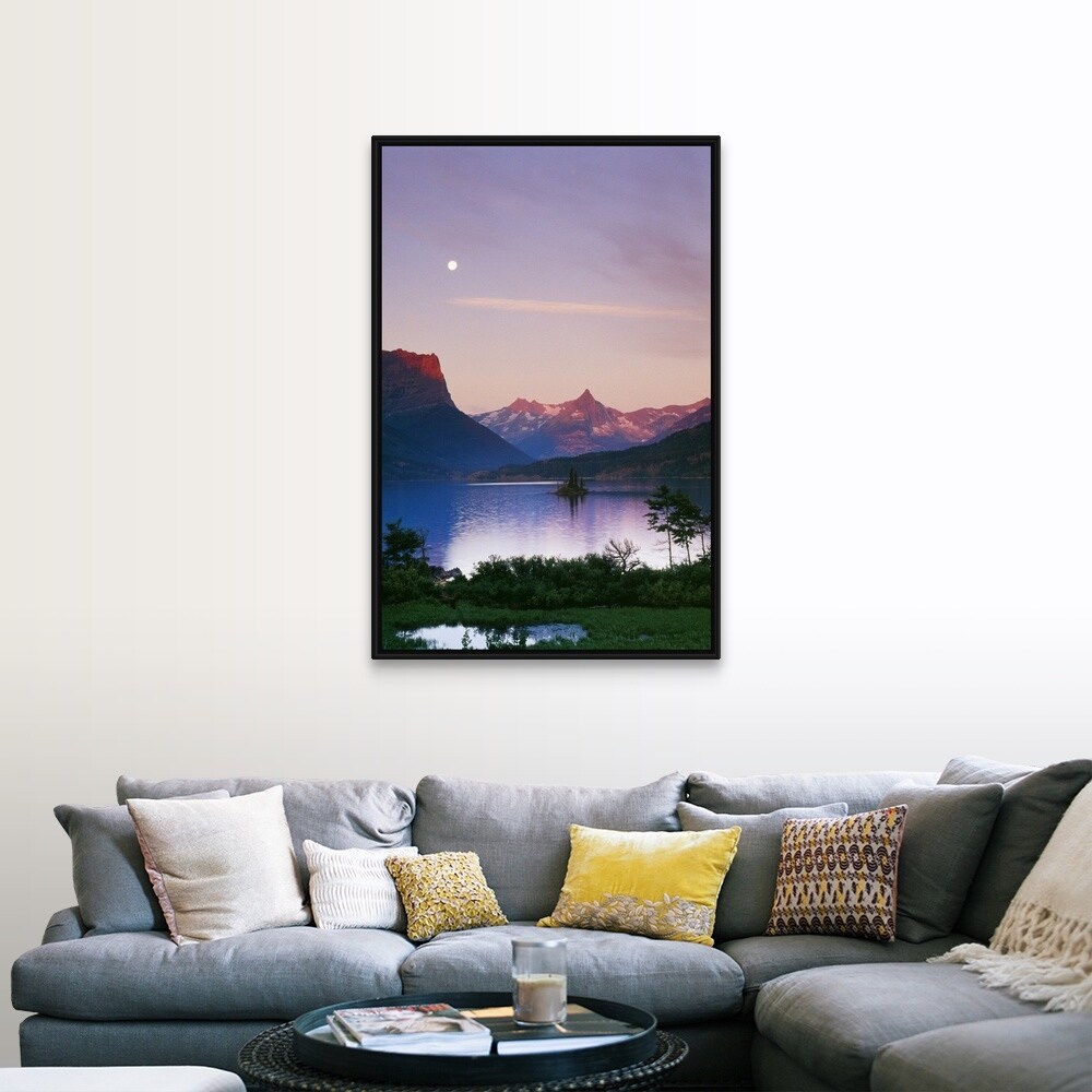 "Moon Over Mountains And Saint Marys Lake" Black Float Frame Canvas Art