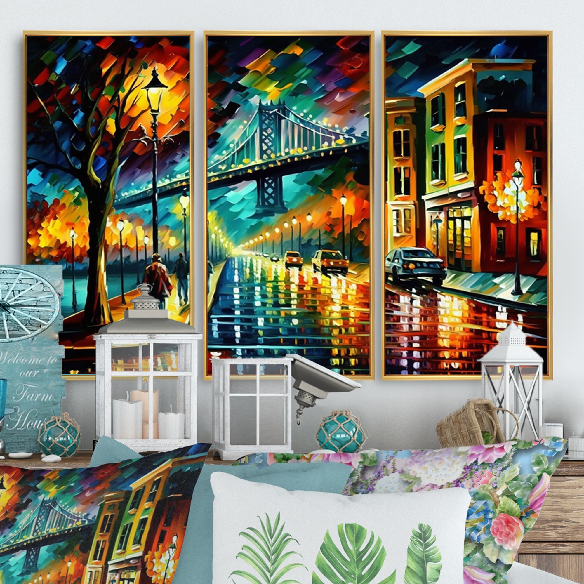 Designart "Colorful San Francisco II" City Framed Canvas Art Print - 3 Panels