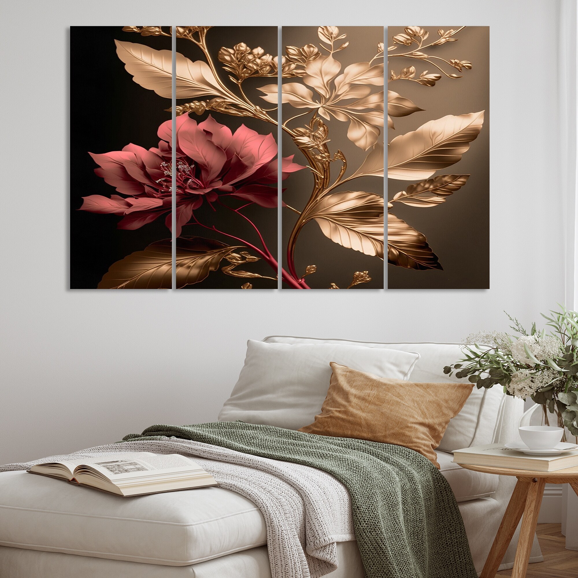 Designart "Vintage Glam Rose I" Floral Multipanel Canvas Print