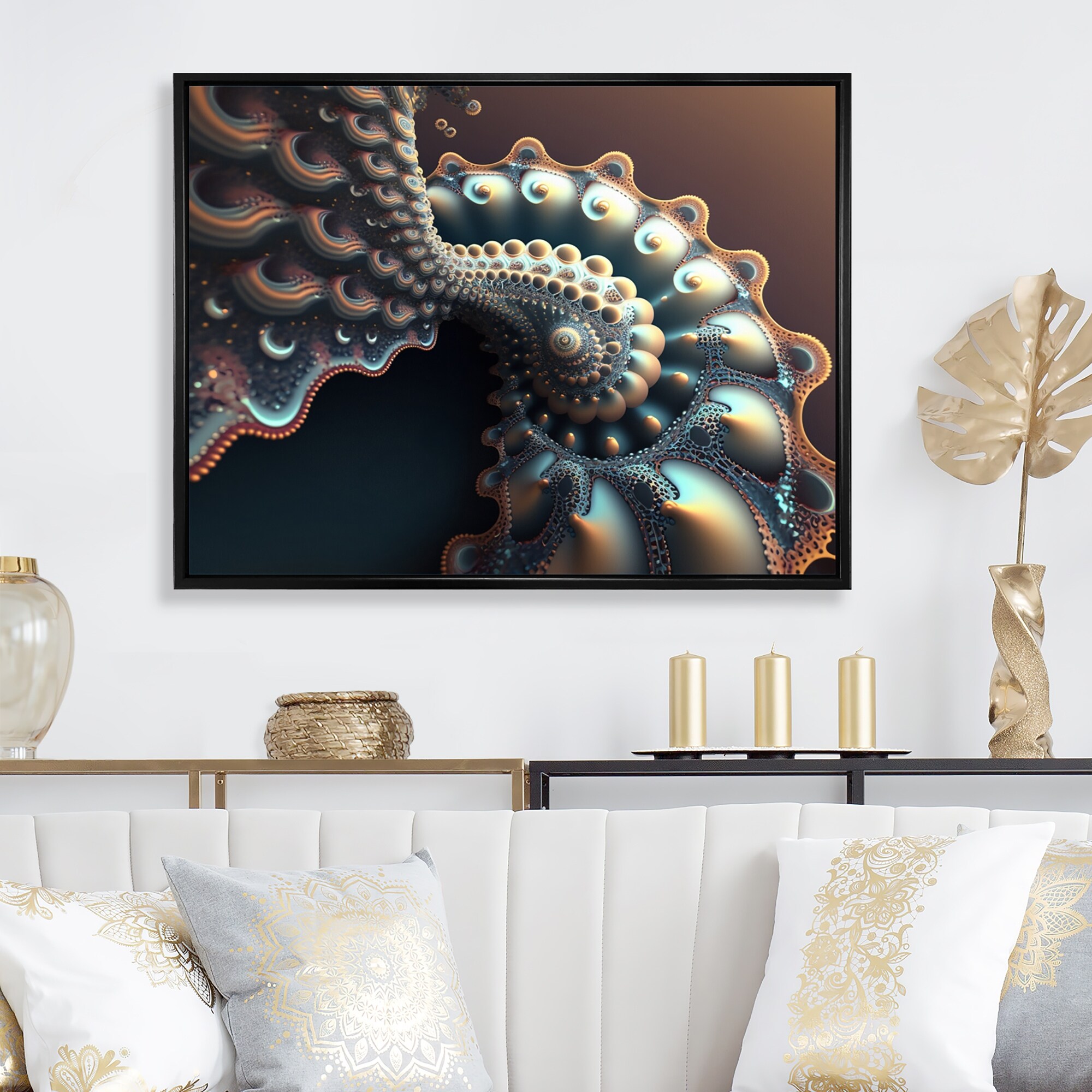 Designart "Turquoise Fractal Universe I" Modern Geometric Framed Canvas Wall Art Print