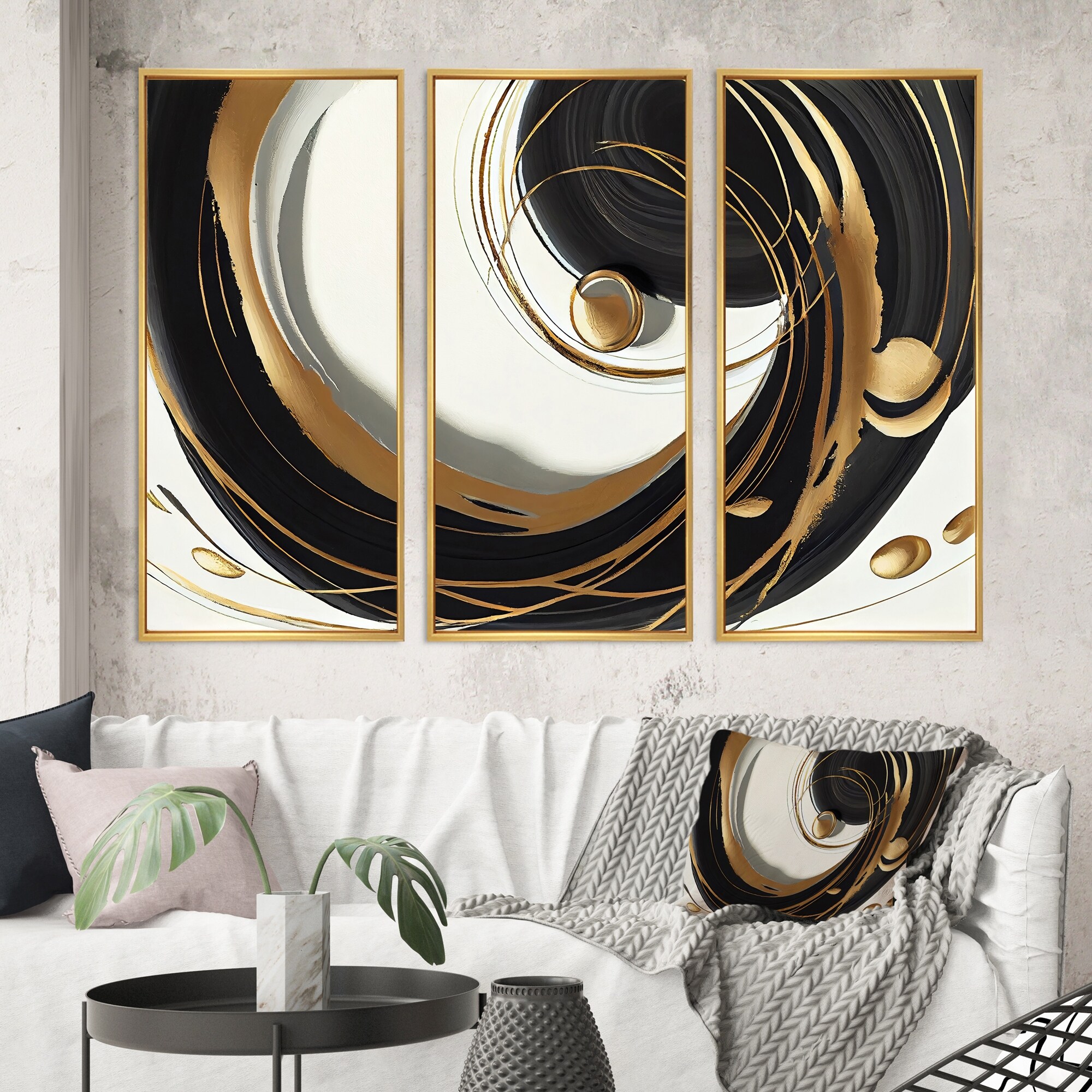 Designart "Gold Glamour Circle II" Modern Spiral Framed Canvas Art Print - 3 Panels