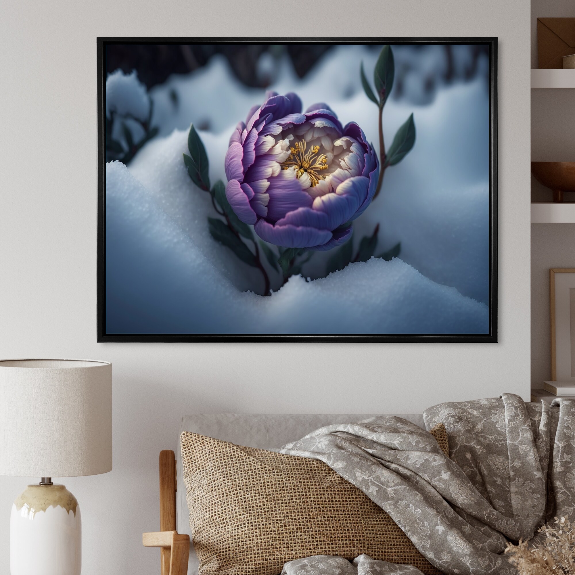 Designart "A Blooming Puple Peony Flower in Winter IV" Floral & Botanical Framed Canvas Art Print