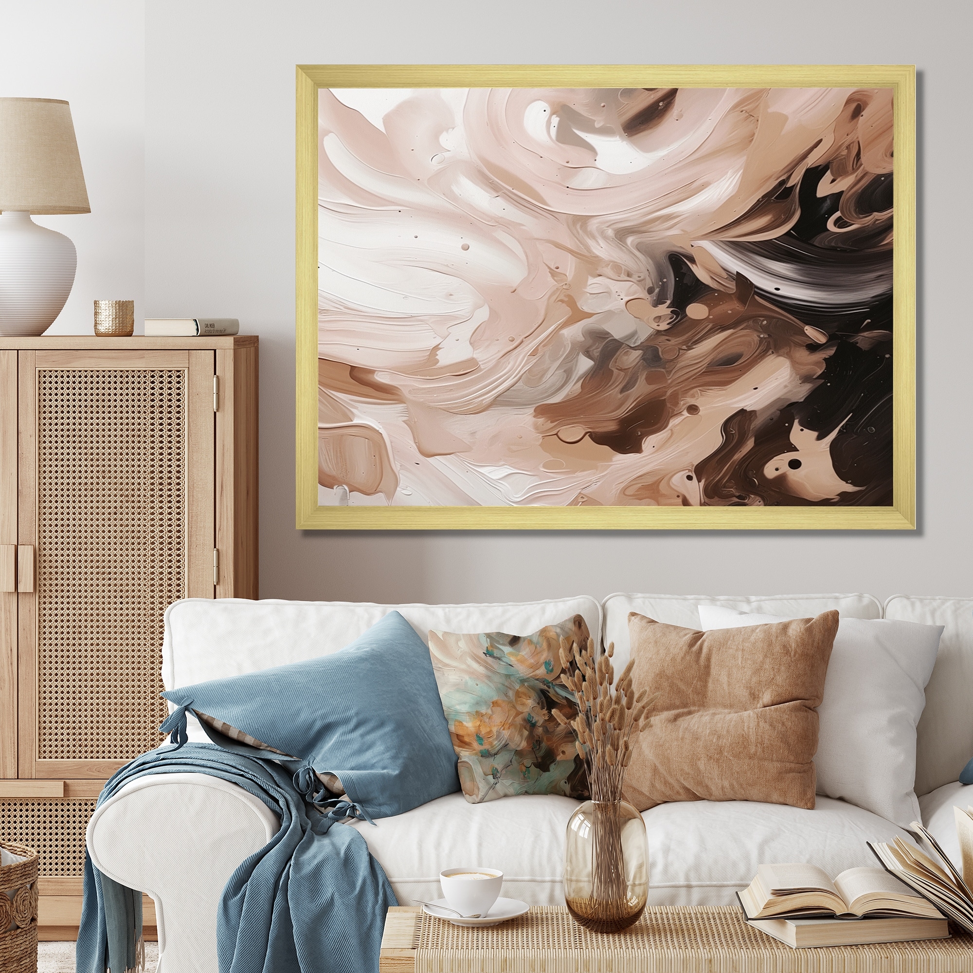 Designart "Liquid Earth Tones V" Abstract Liquid Ink Framed Canvas Wall Art Print