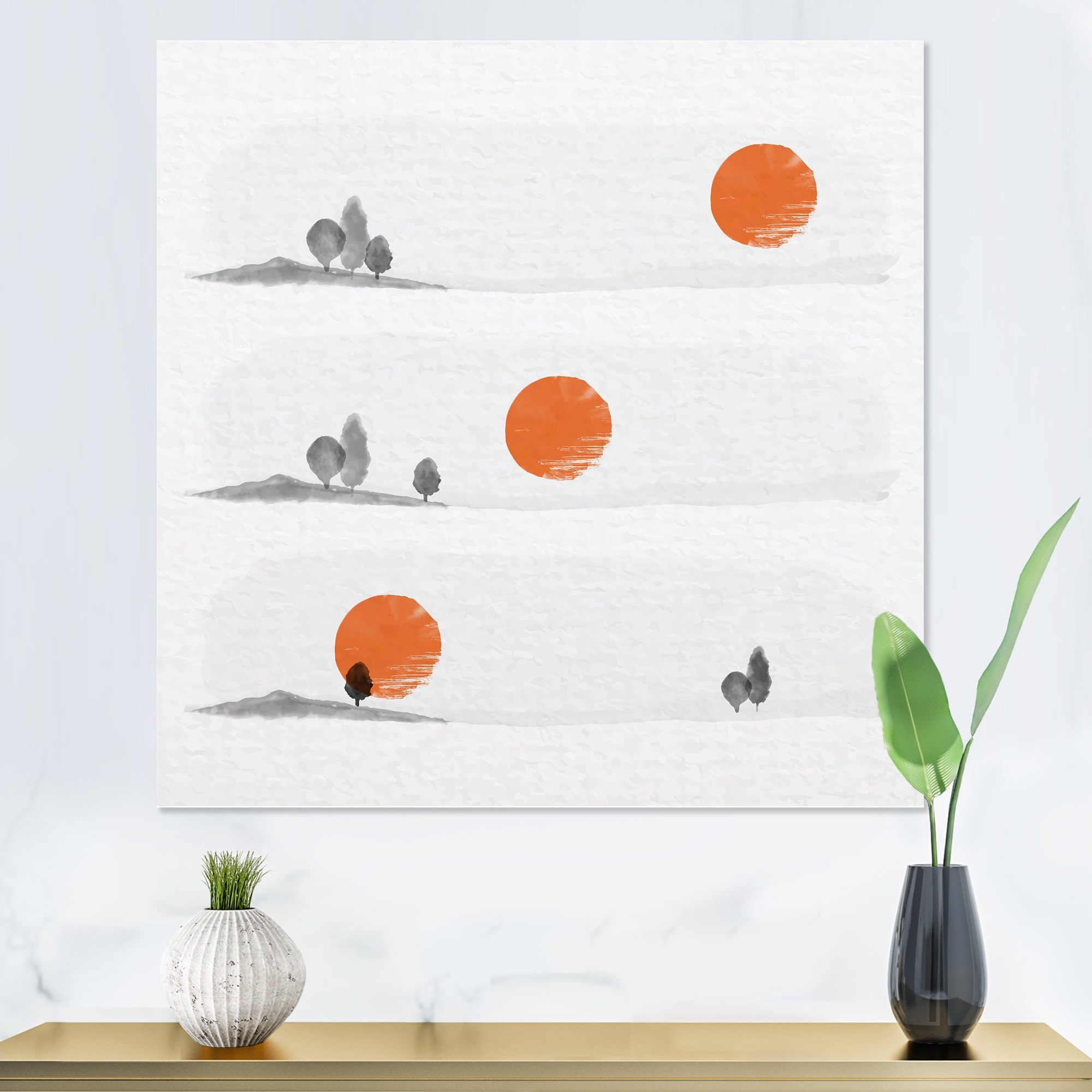 Designart "Minimalit Season Trees And Suns" Modern Canvas artwork