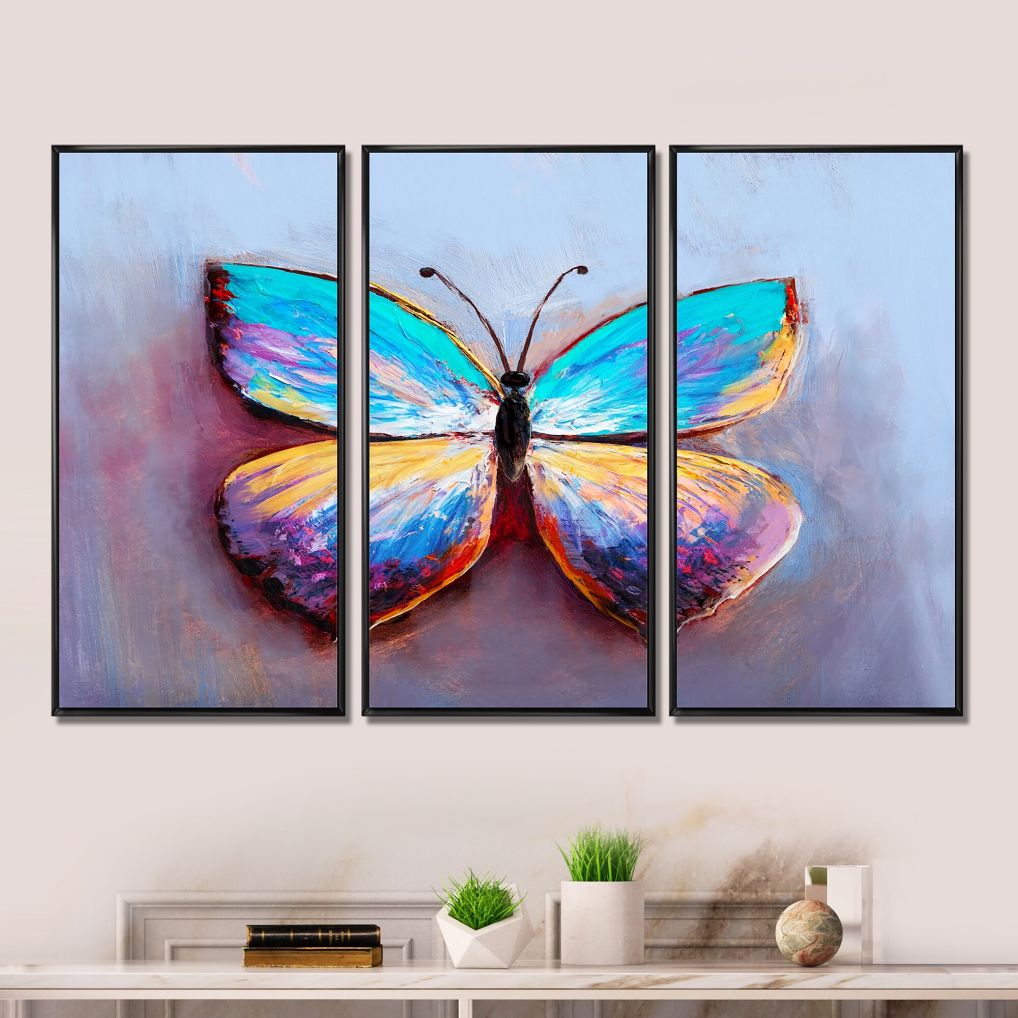 Designart "Butterfly Portrait in Multicolors V" Modern Framed Artwork Set of 3 - 4 Colors of Frames