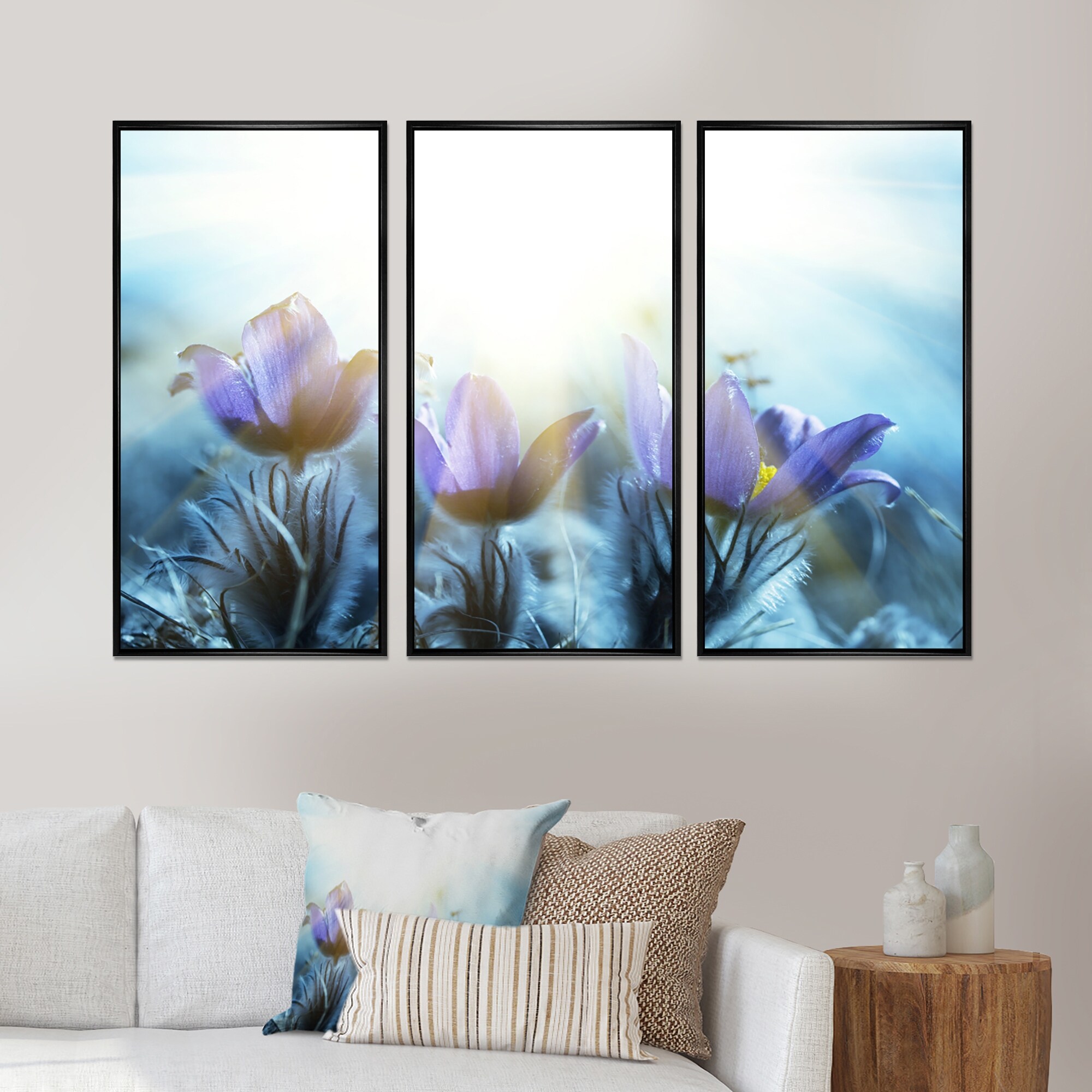 Designart "Blooming Blue Spring Flowers" Floral Framed Artwork Set of 3 - 4 Colors of Frames